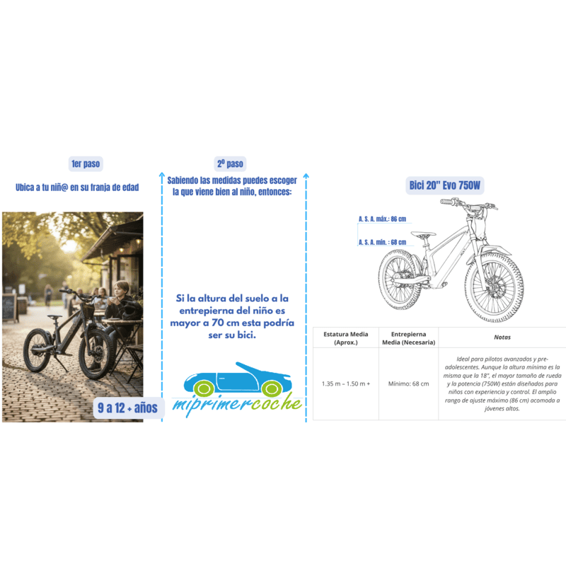 La bicicleta eléctrica para niños RFN EVO de 20 pulgadas es el equilibrio perfecto entre diversión, seguridad y desarrollo. Diseñada especialmente para niños de 9 a 14 años, combina la emoción de una moto eléctrica con la estabilidad de una bici sin pedales.