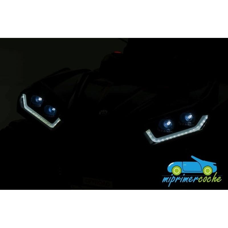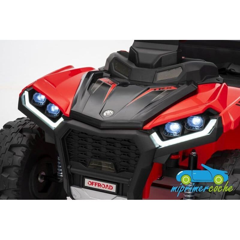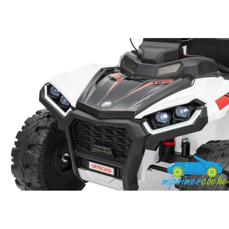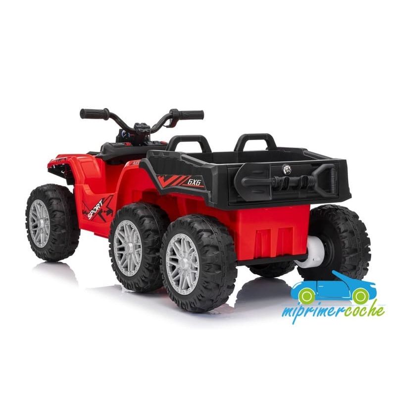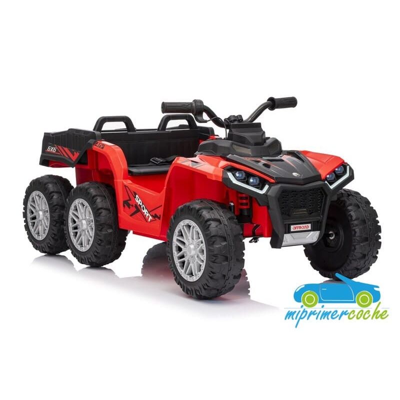 Atv Quad eléctrico infantil SPORT TRX 24V 6 ruedas, con 2 motores, mando parental, acelerador en el manillar, porta objectos, luces led, ruedas de caucho y asiento en poli piel.