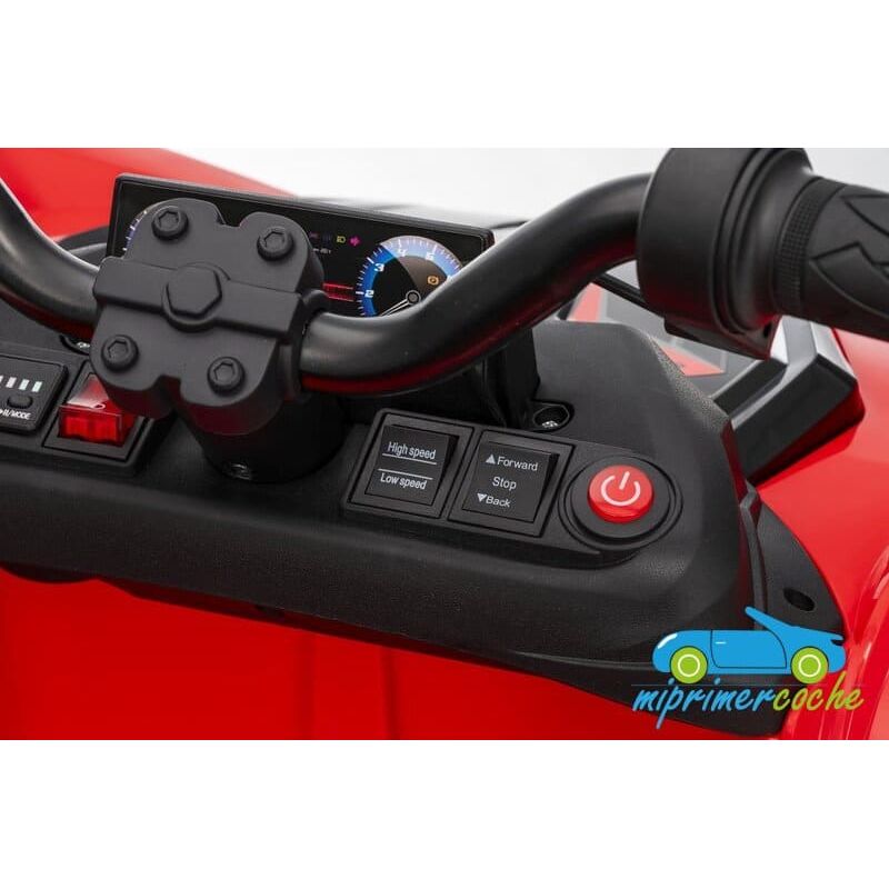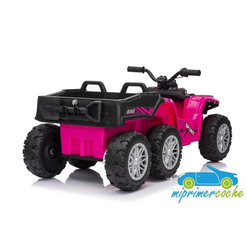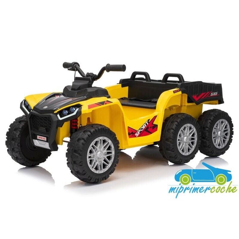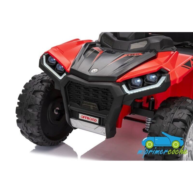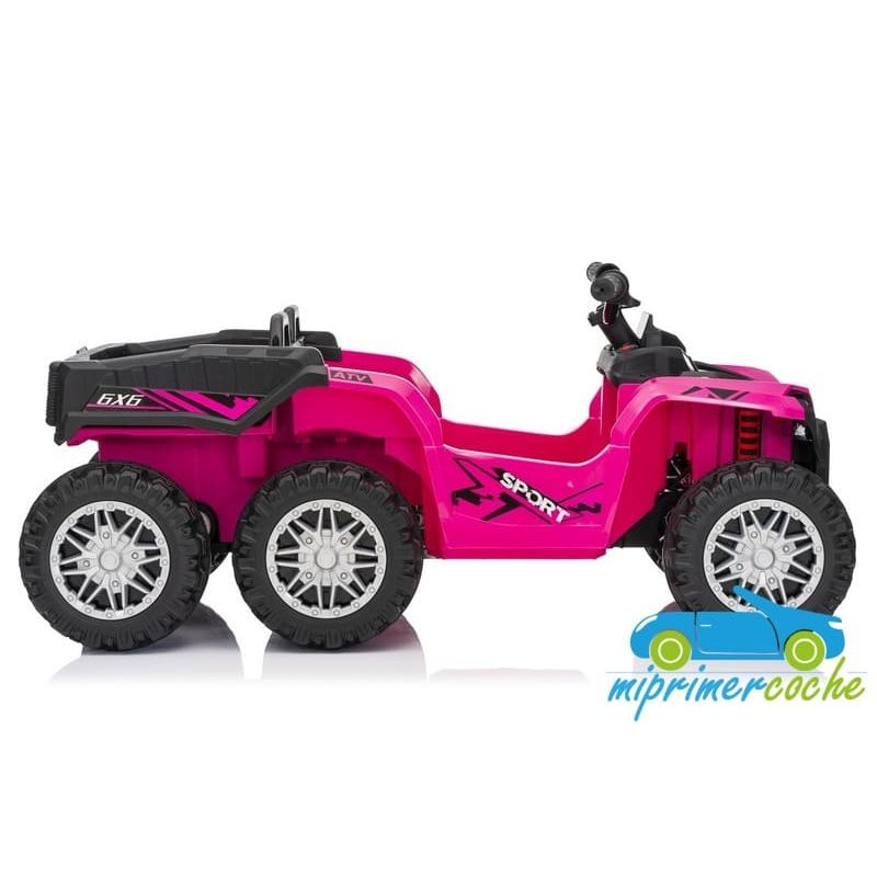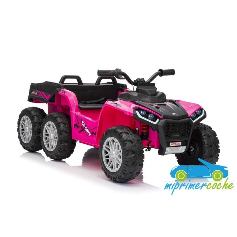 Atv Quad eléctrico infantil SPORT TRX 24V 6 ruedas, con 2 motores, mando parental, acelerador en el manillar, porta objectos, luces led, ruedas de caucho y asiento en poli piel.