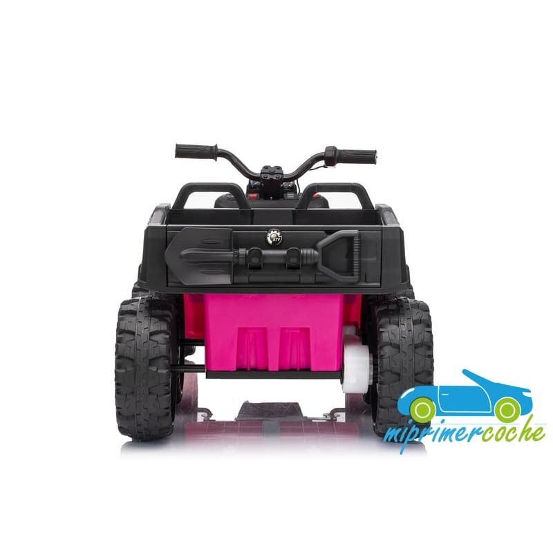 ¡Prepárate para la aventura con el quad ATV eléctrico para niños de 24V! Diseñado con seis ruedas que ofrecen estabilidad y tracción, este vehículo es perfecto para explorar terrenos y divertirse al máximo. Cuenta con tracción en las dos ruedas traseras, lo que garantiza un rendimiento excelente en diferentes superficies. Con aceleración en el manillar permite controlar la velocidad de manera sencilla y segura. Incluye un mando parental para que los padres puedan controlar la conducción y asegurar la seguridad de los pequeños en todo momento. Además, tiene un práctico maletero en la parte trasera, ideal para transportar objetos o herramientas, y viene equipado con una pala, perfecta para jugar y simular trabajos de excavación. ¡Una opción ideal para que los niños vivan aventuras llenas de emoción y diversión!