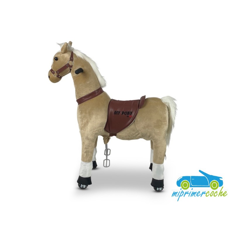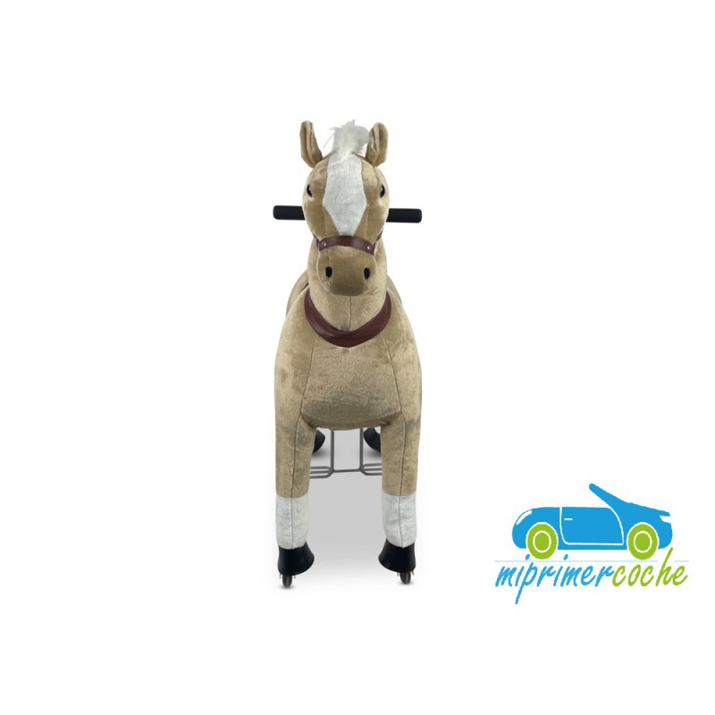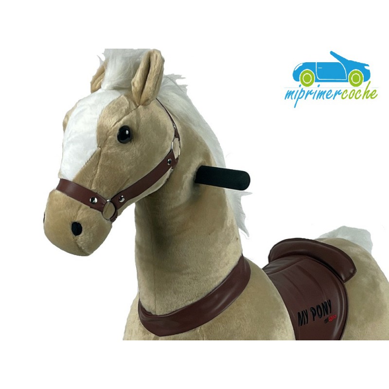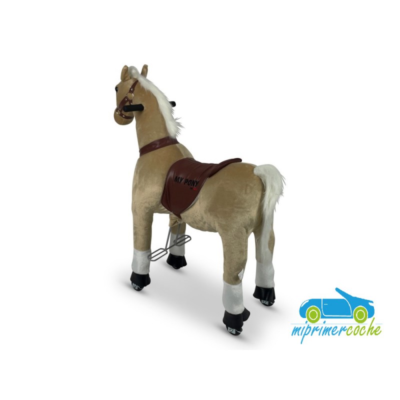 ·El Poni es un producto innovador , que se desplaza por el solo movimiento del niño , que simula montar un caballo . El movimiento del pony se hace mediante ruedas de plástico