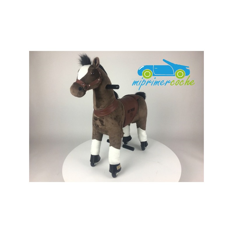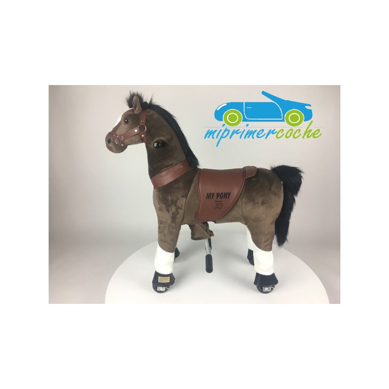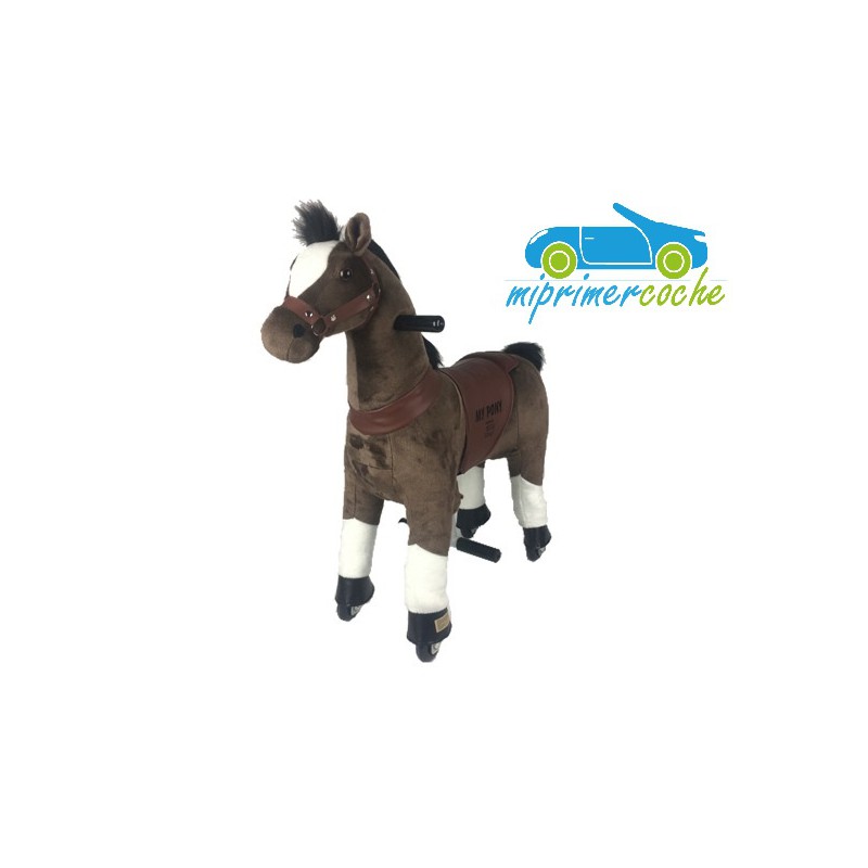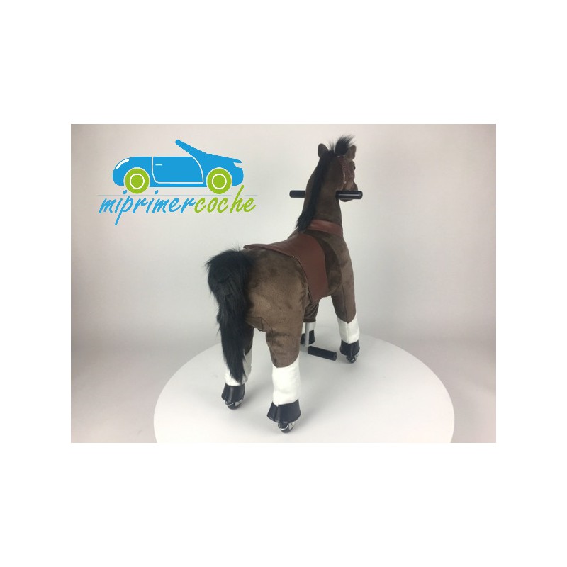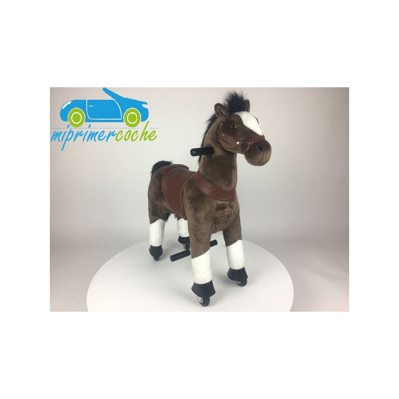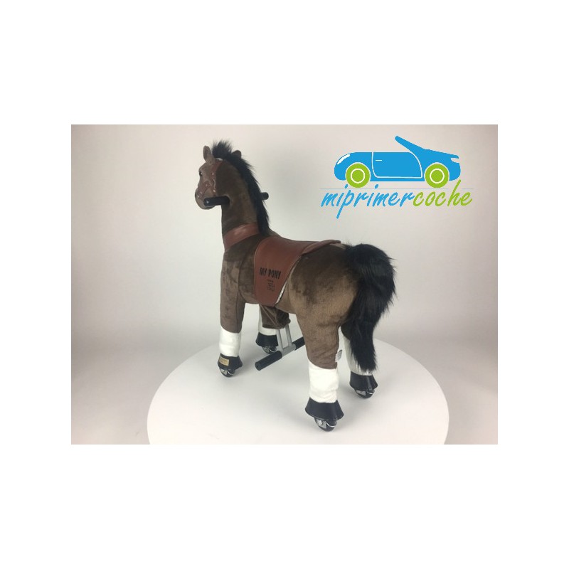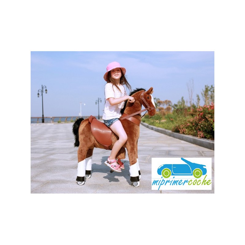 ·El Poni es un producto innovador , que se desplaza por el solo movimiento del niño , que simula montar un caballo . El movimiento del pony se hace mediante ruedas de plástico