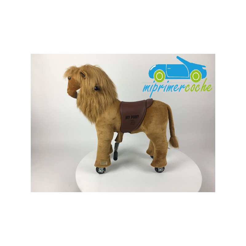 ·El Poni es un producto innovador , que se desplaza por el solo movimiento del niño , que simula montar un caballo . El movimiento del pony se hace mediante ruedas de plástico