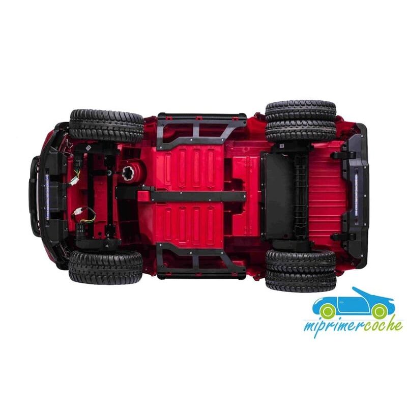 El nuevo modelo de coche eléctrico infantil dispone de una mejoría de capacidad de la batería , se ha duplicado la capacidad ya que ahora incorpora 2 baterías de 12v (24v) de un amplio espacio de carga , emulando al todoterreno de verdad. Montado en este exclusivo todoterreno eléctrico no pasara inadvertido para nadie, pues su intenso color deslumbrará hasta al más apasionado de los coches.
