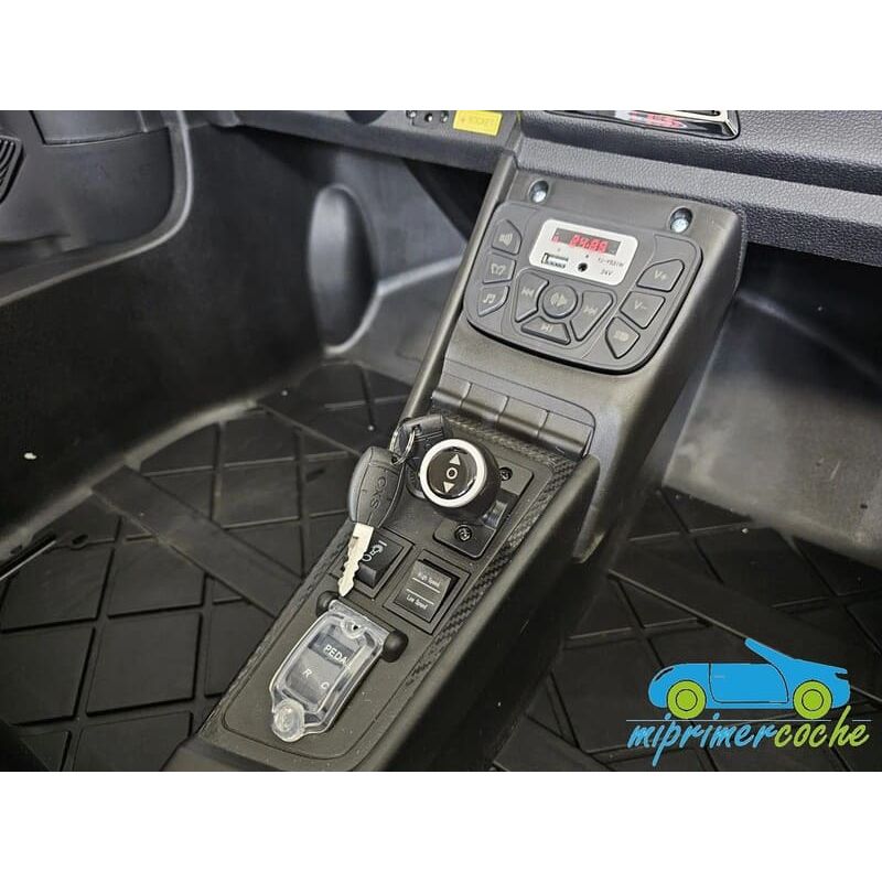 - el coche puede ser controlado por el padre gracias al mando distancia 2.4G con funciones de marcha hacia delante / atrás , girar izquierda / derecha , selector de velocidades y botón de paro de emergencia .