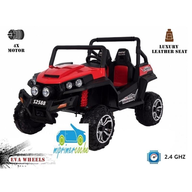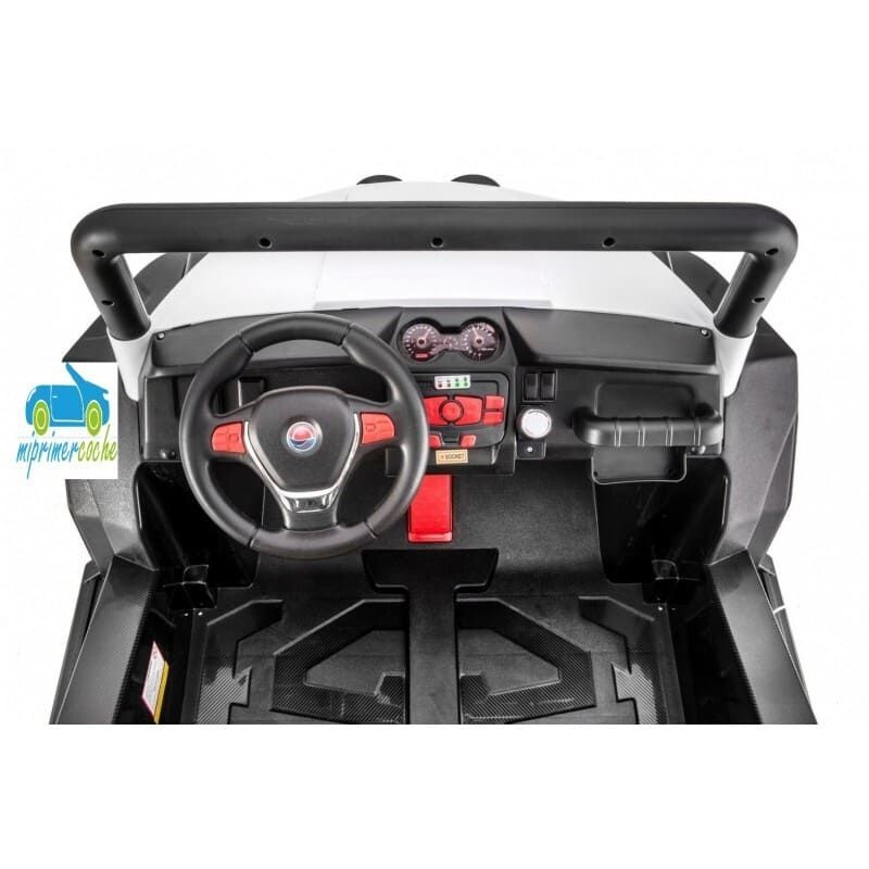 · mando parental 2.4G con controles de marchas ( hacia adelante y hacia atrás ) control de direción ( izquierda y derecha ) control de velocidades ( 3 velocidades )
