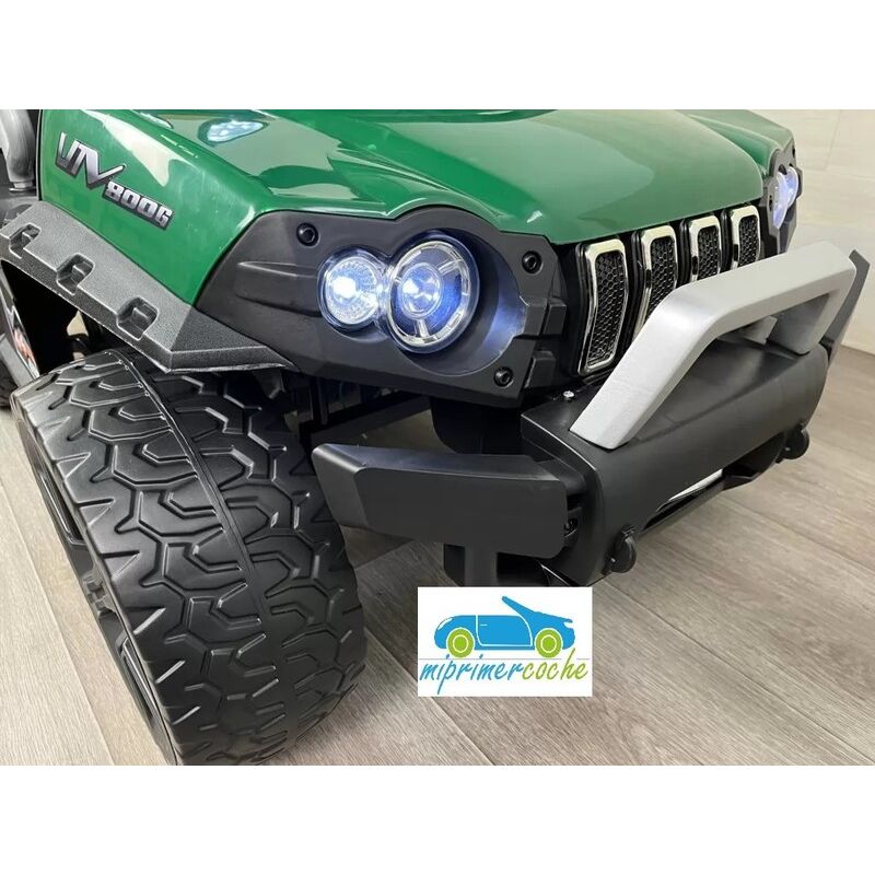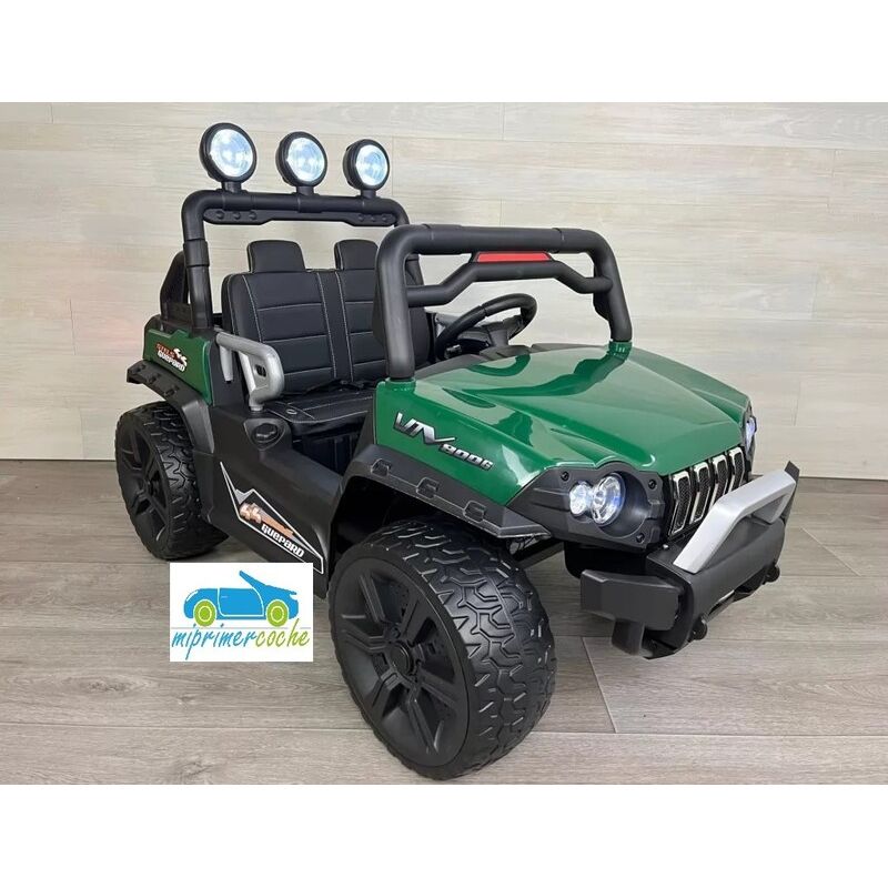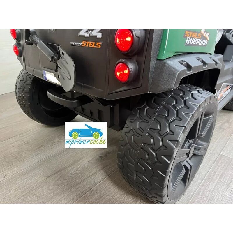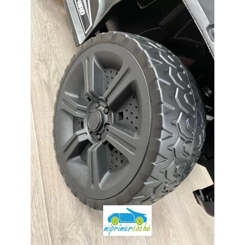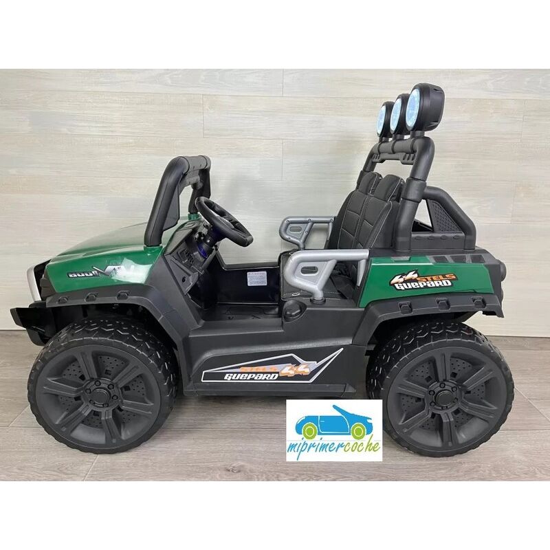 Un coche eléctrico para niños con 2 plazas , 4 motores de 12v, ruedas de caucho , asiento en polipiel , asa para el transporte y lo más destacado el sistema balancín que hace que el coche se mueva hacia adelante y hacia atrás .