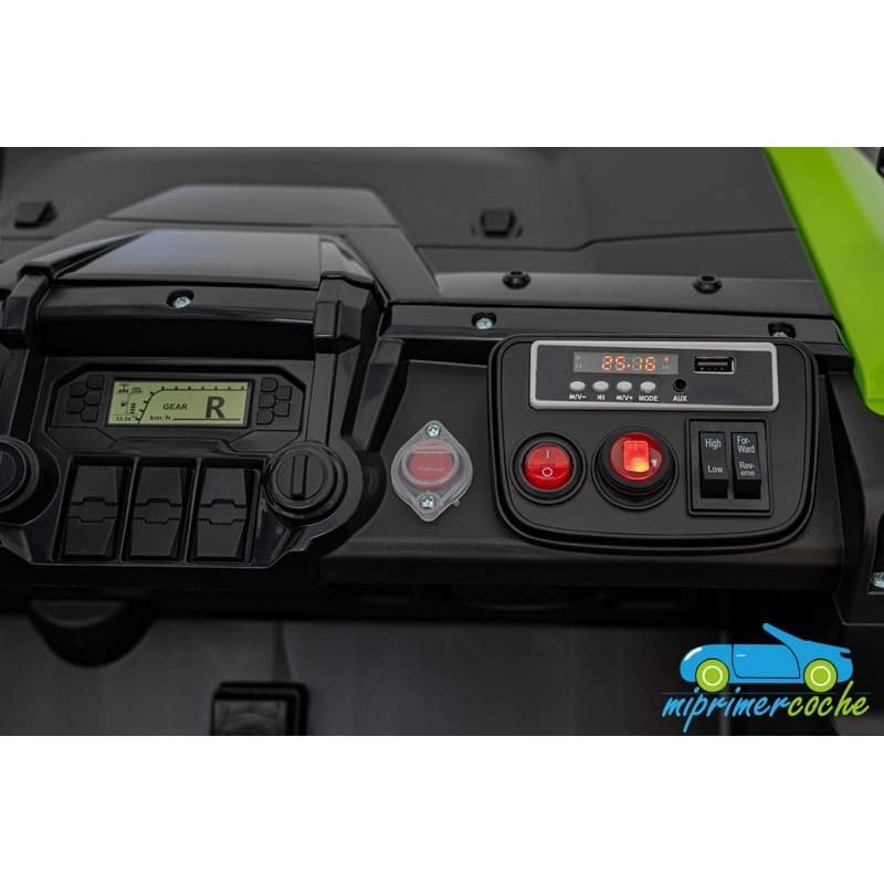 El coche de juguete eléctrico todoterreno Honda con cuatro motores y una potencia total de 480 W no puede faltar en ningún garaje infantil. El coche de juguete funciona con una batería de 24 V y 9 Ah . La carga máxima del carro es de 60 kg . Durante el paseo, el niño seguramente quedará fascinado por el panel de música con MP3, Bluetooth, USB, AUX y Radio .
