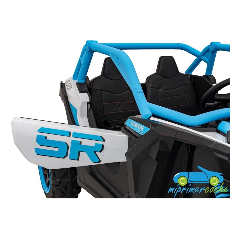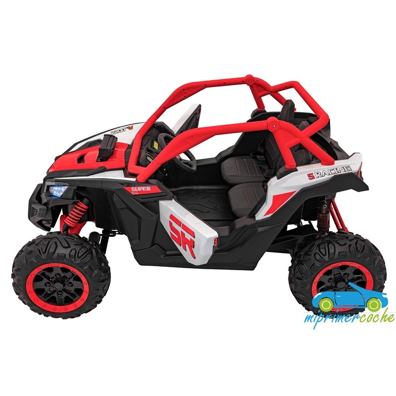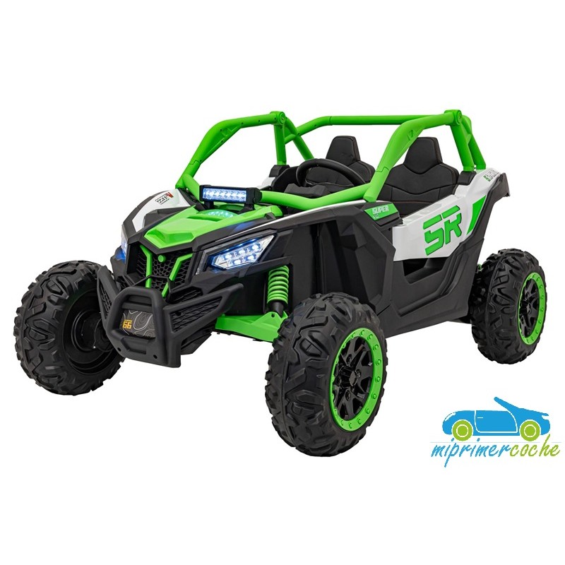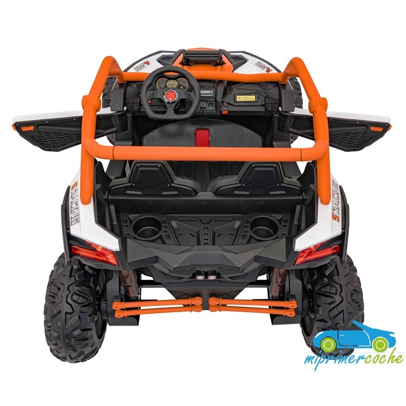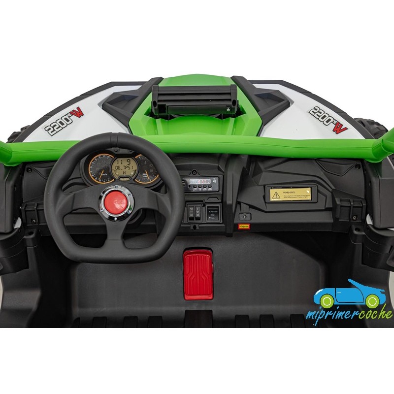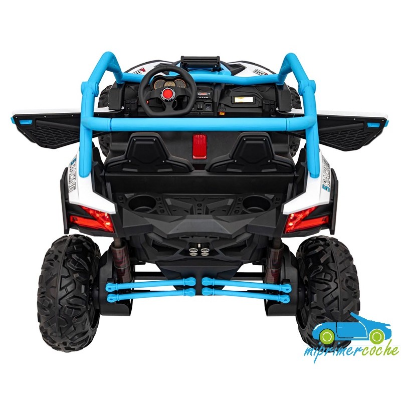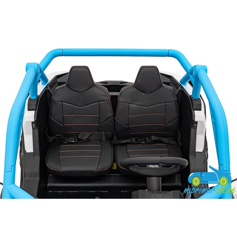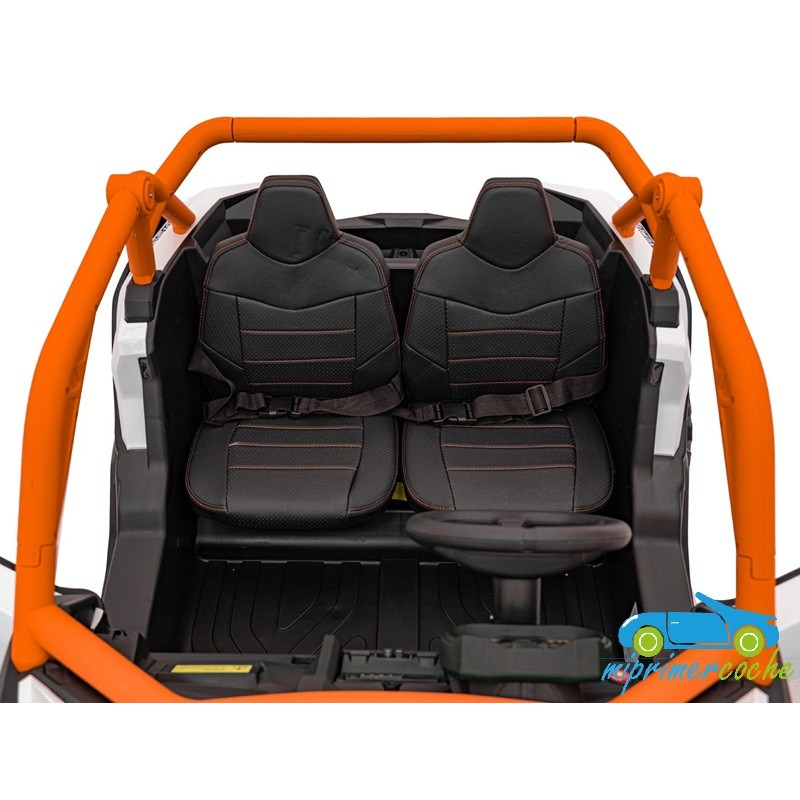 El coche eléctrico para niños TODOTERRENO ELÉCTRICO BUGGY CAN-AM 4X4 24V 2 PLAZAS es un coche potente con 4 motores 12v75W que le otorga tracción a las 4 ruedas . Está equipado con mando distancia 2.4G , ruedas de caucho , 2 asientos de piel , suspensión en cada rueda , equipo de música , luces LED .