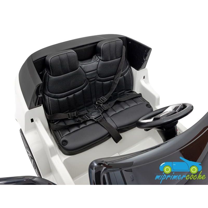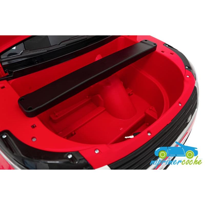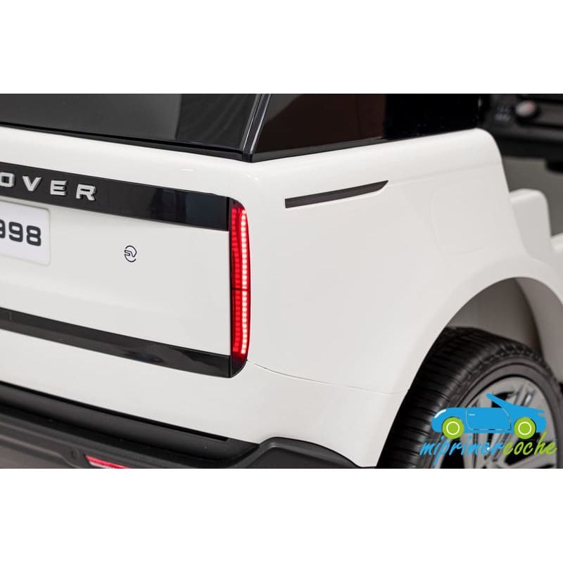 El diseño del coche para niños RANGE ROVER 12V 2 PLAZAS está inspirado en el icónico Range Rover, incluye detalles como faros LED, puertas que se abren y cierran, y un cómodo asiento en polipiel.