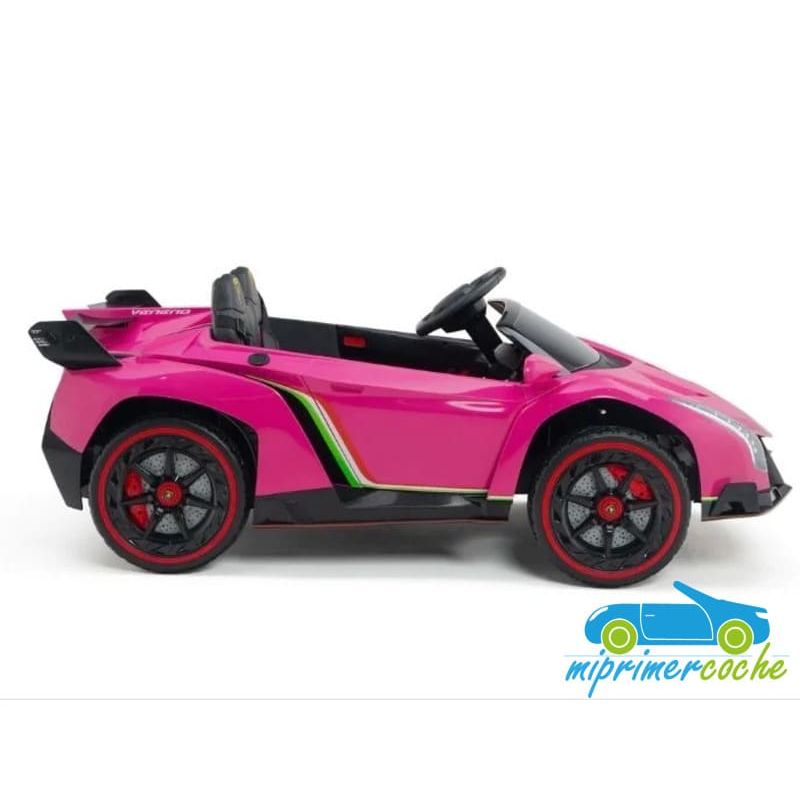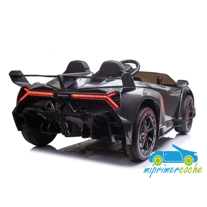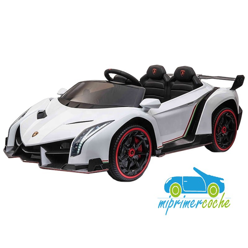 Coche eléctrico para niños LAMBORGHINI VENENO DE ALTO BRILLO 12V con mando parental 2.4G , ruedas de caucho ,2 asientos en piel , 4 motores 45w .
