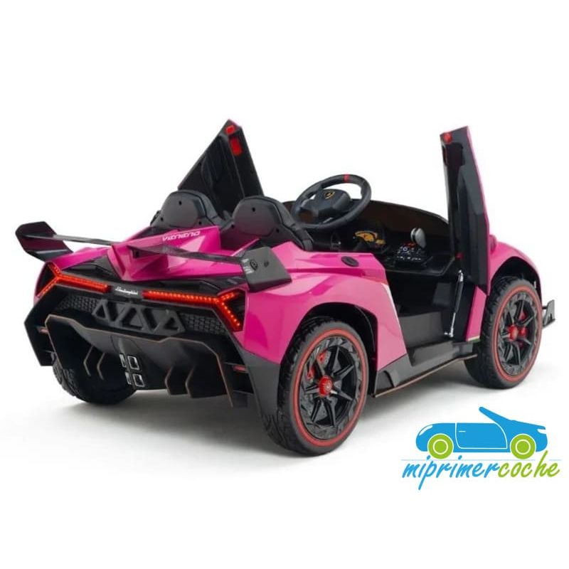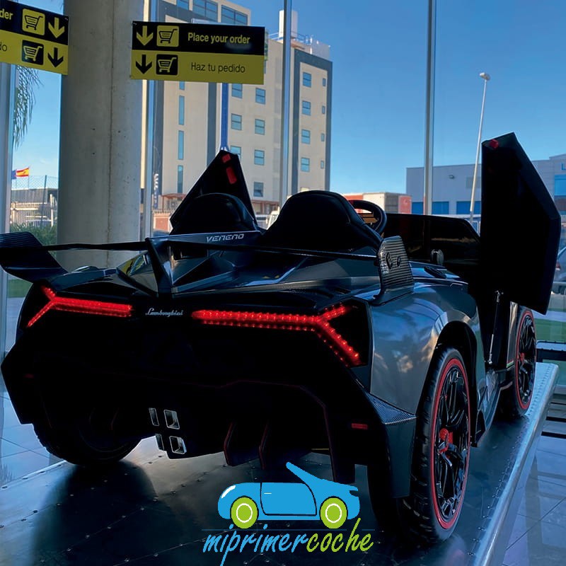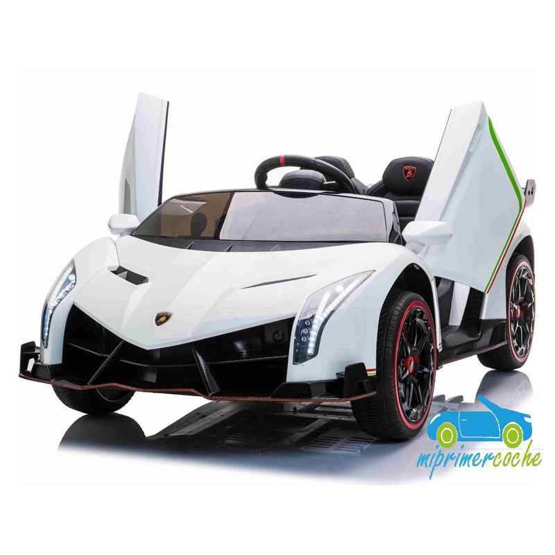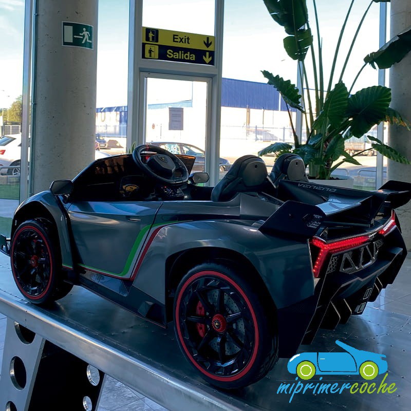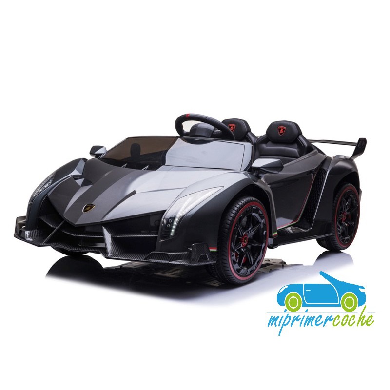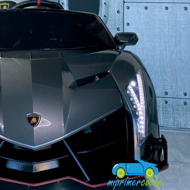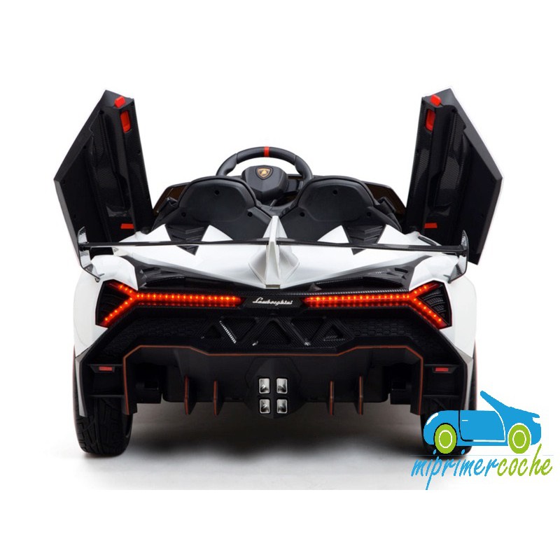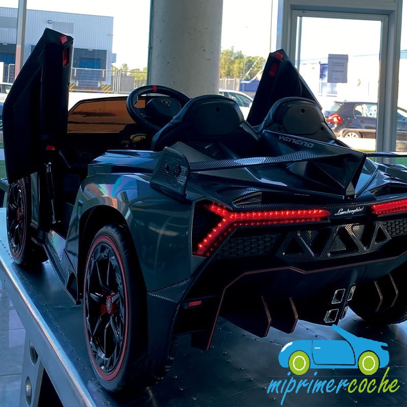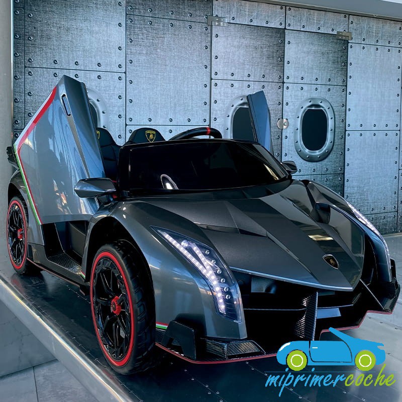 Mi Primer Coche presenta el coche eléctrico para niños LAMBORGHINI VENENO con 2 plazas , una replica con la LICENCIA OFICIAL de la marca . Es un coche con un acabado excelente con la calidad que se puede esperar de un coche licenciado por una marca tan lujosa , un diseño con trazos deportivos , una línea cuidada , que destaca por la apertura de las puertas en forma de gaviota , permitiendo dejar las puertas en lo mas alto , con total seguridad , gracias a los amortiguadores . Con una apariencia robusta y un interior deportivo , con asiento en piel , ruedas de caucho , equipo completo de música , 4 potentes motores de 12v 45w ...este modelo es una gran elección de compra .