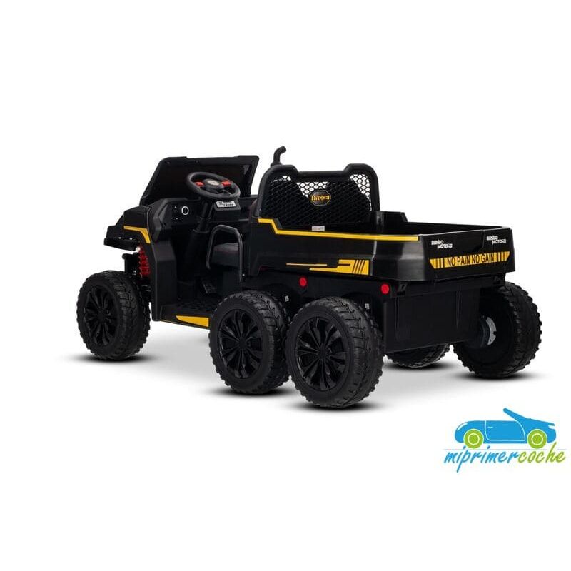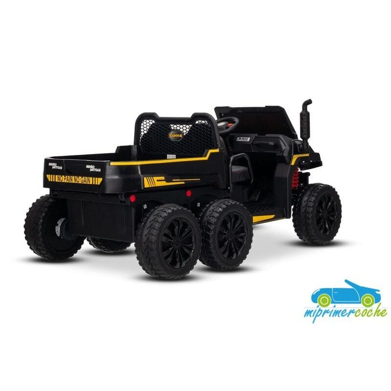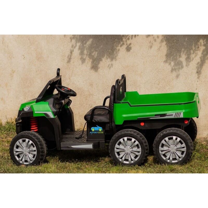 El Todoterreno Eléctrico Infantil Rider XL 24V Con Volquete Trasero es el vehículo ideal para los pequeños aventureros que buscan emociones fuertes. Este impresionante todoterreno, diseñado con un espectacular cuerpo en color verde y negro, está equipado con seis ruedas y cuatro potentes motores de 24V para enfrentarse a terrenos irregulares con facilidad.
