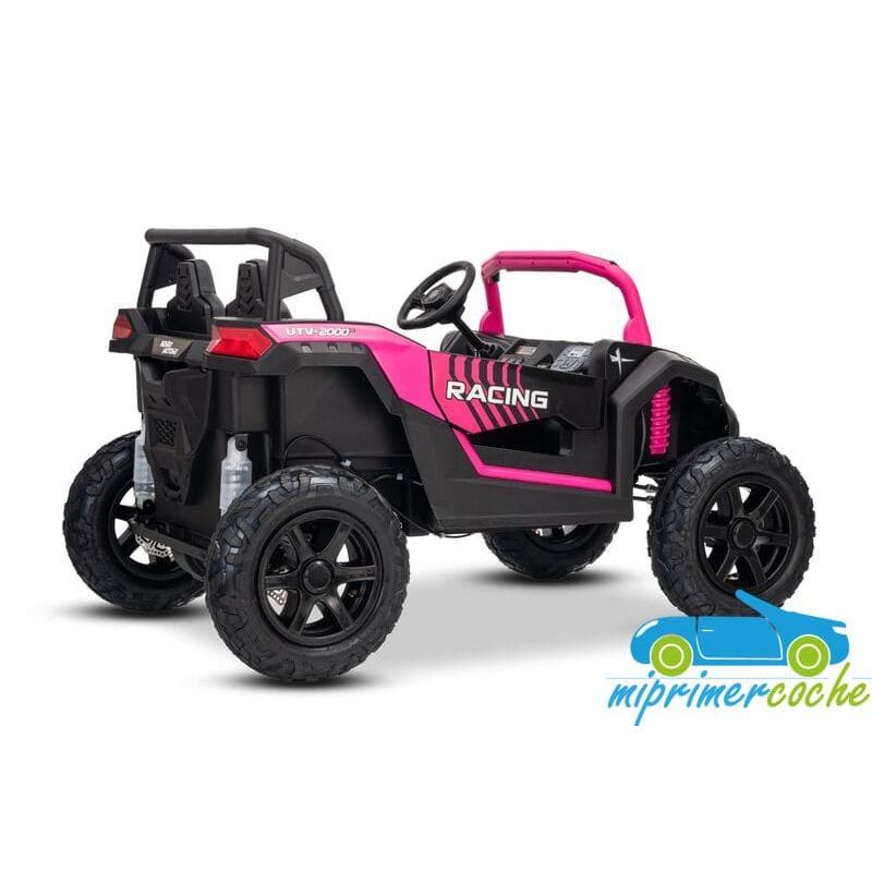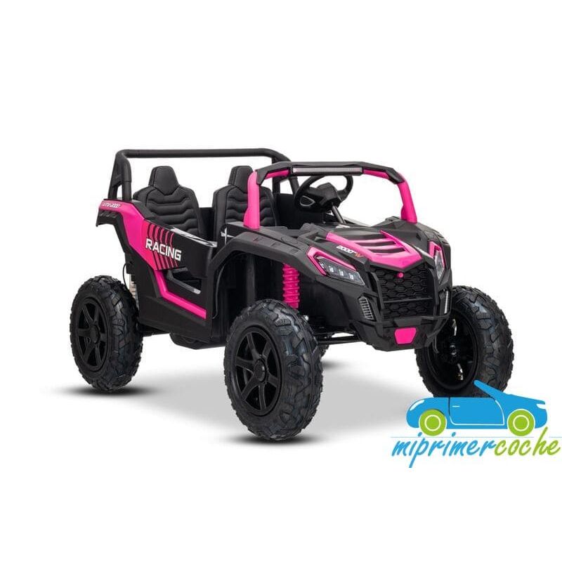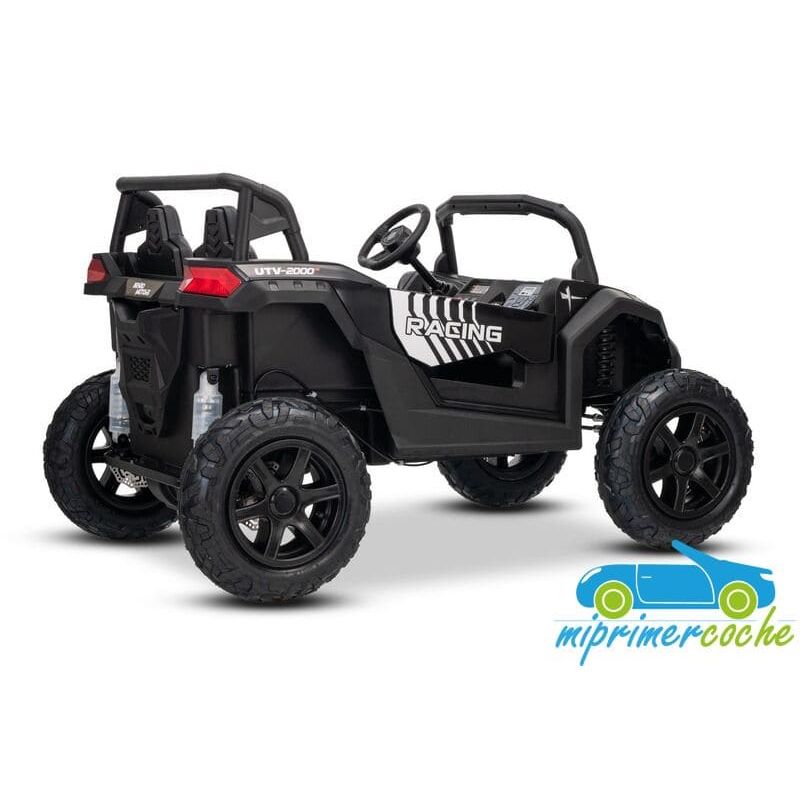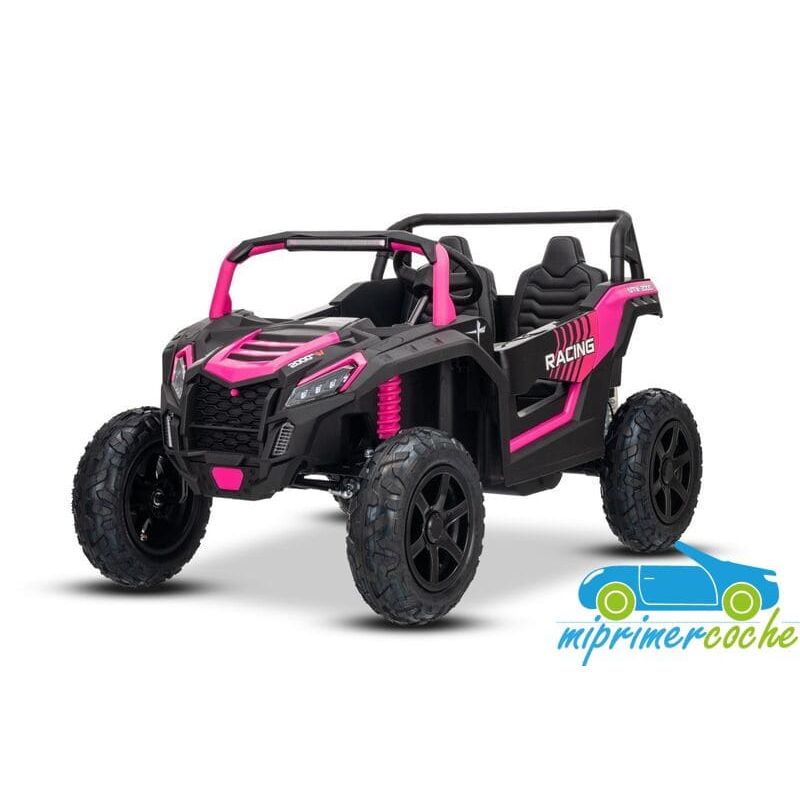 TODOTERRENO ELÉCTRICO INFANTIL BUGGY XXL 24V 2 PLAZAS con ruedas de caucho hinchables ,volante ajustable, asiento en piel, bluetooth, pedal de freno y frenos de discos, batería de Litio.