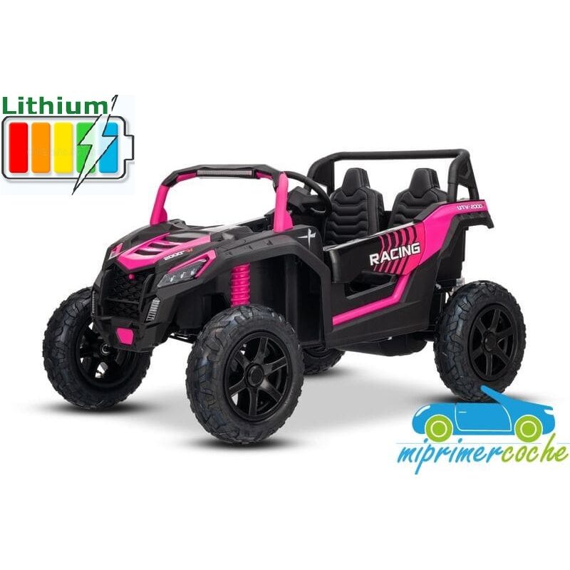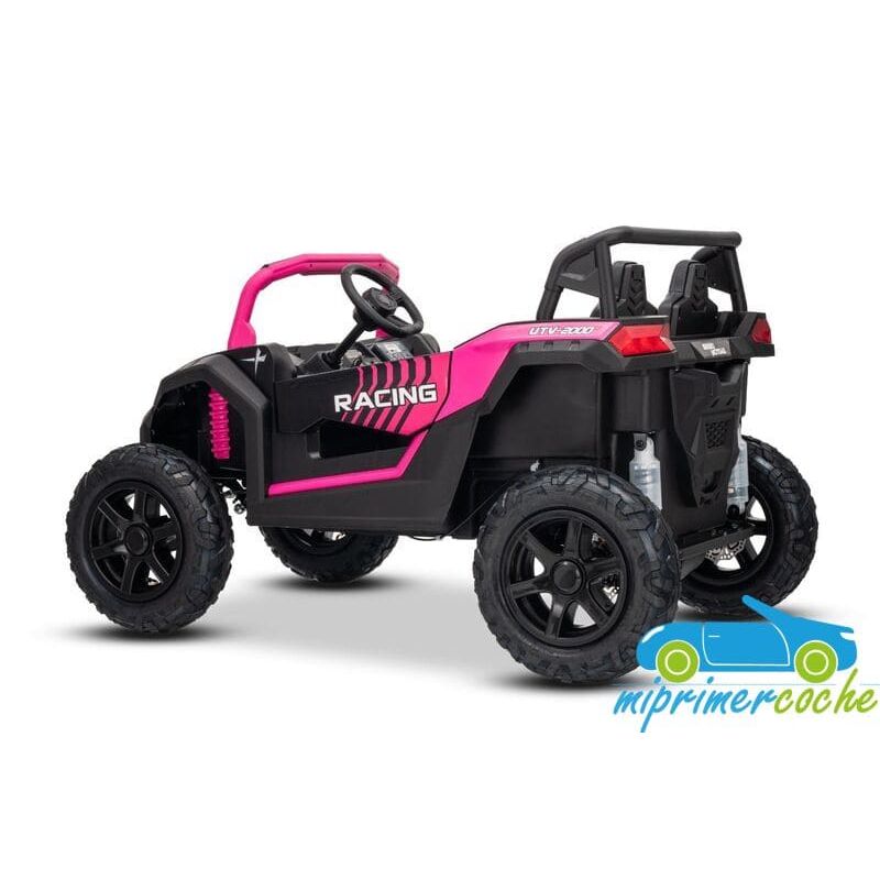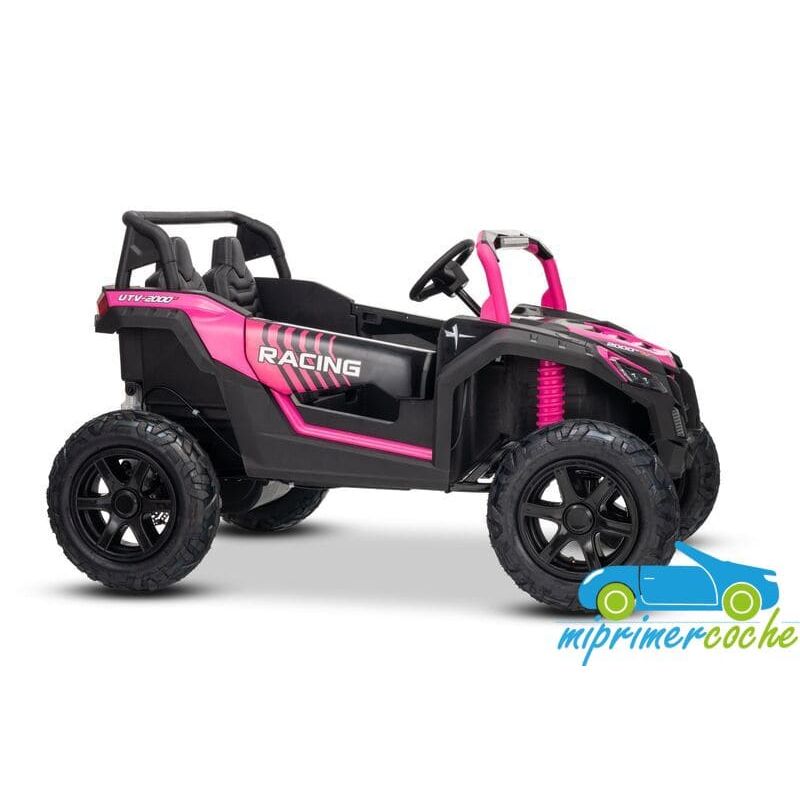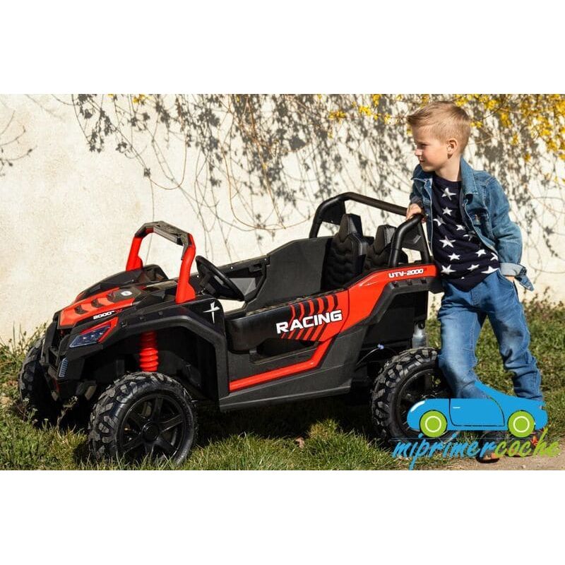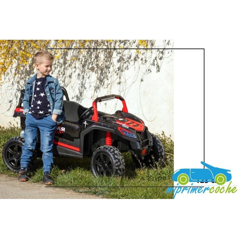 El coche eléctrico para niños TODOTERRENO ELÉCTRICO BUGGY UTV XXL 24V 2 PLAZAS es un coche potente y muy grande. Es capaz de soportar peso de hasta 100 kg y puede alcanzar hasta 15 km/h.