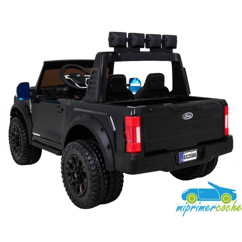 Coche eléctrico para niños FORD SUPER DUTY 4X4 12V con mando parental 2.4G,equipo de música, 2 plazas, ruedas de caucho, 4 motores, ruedas traseras dobles, luces led, asiento en eco piel, ventiladores.