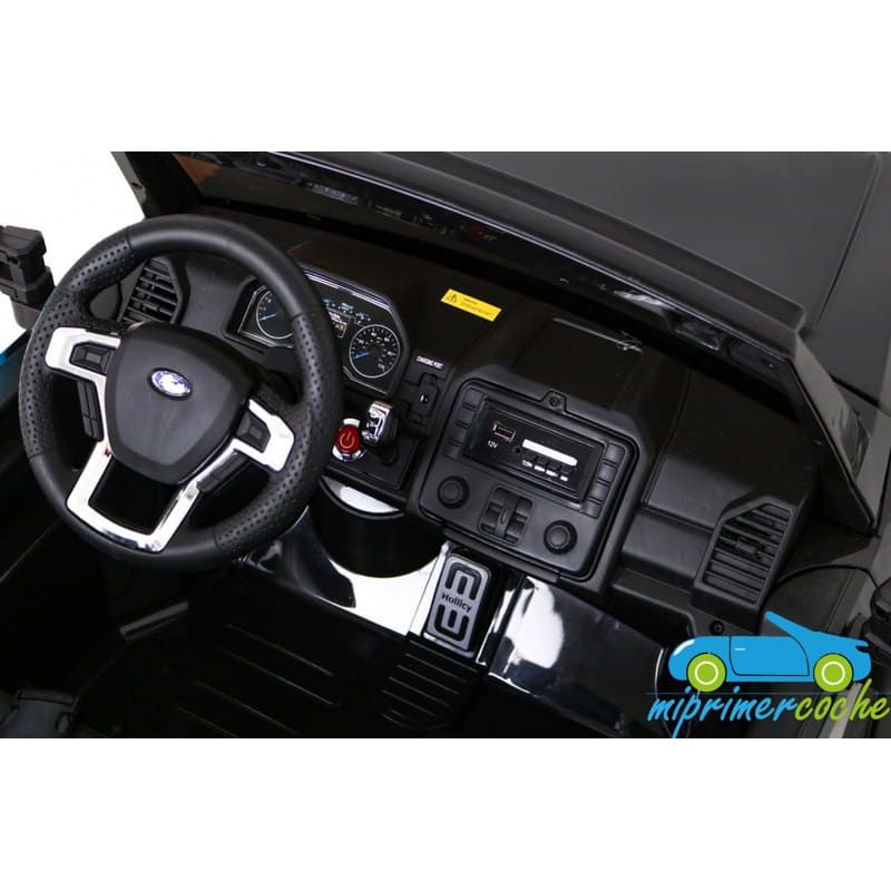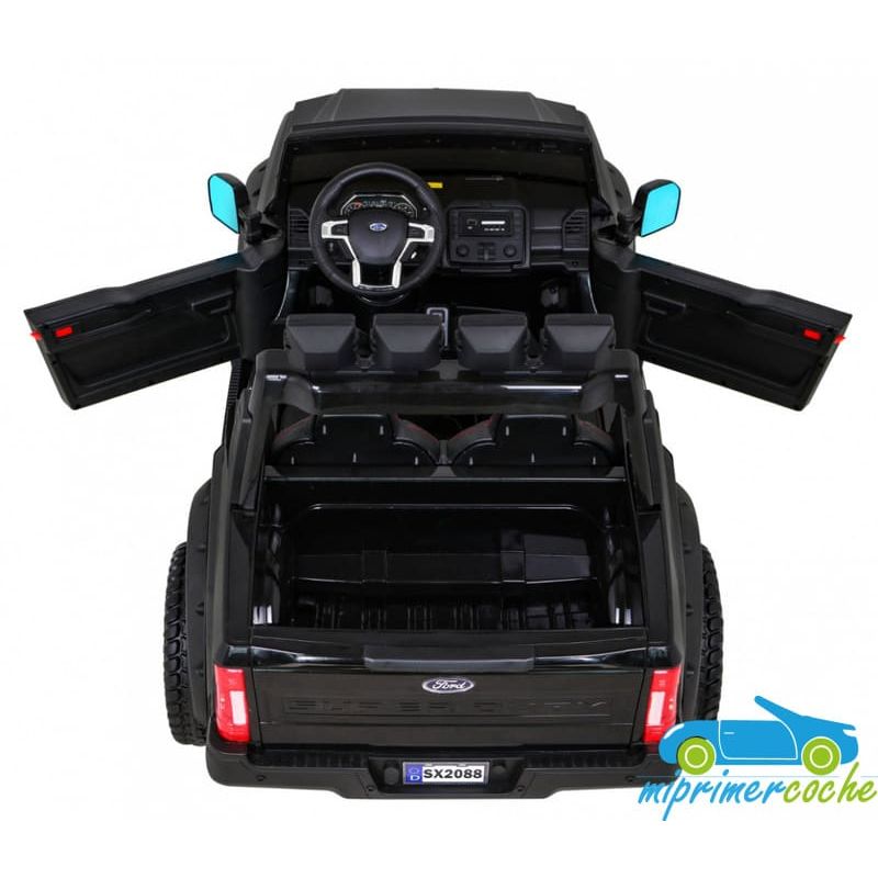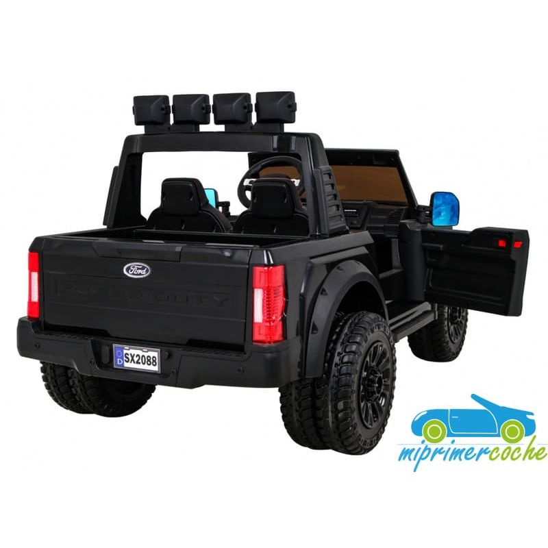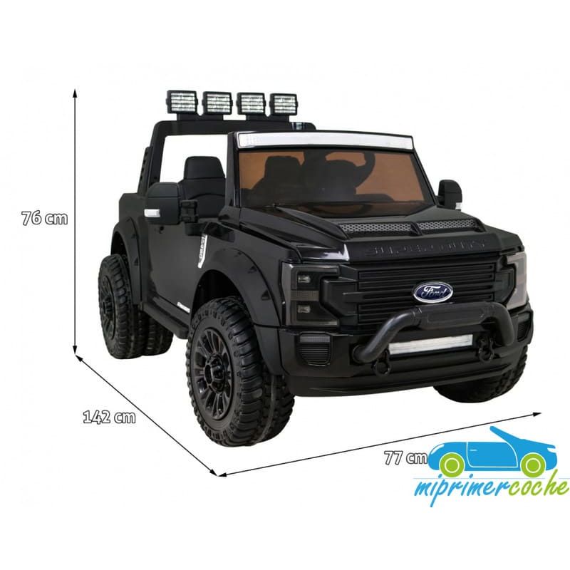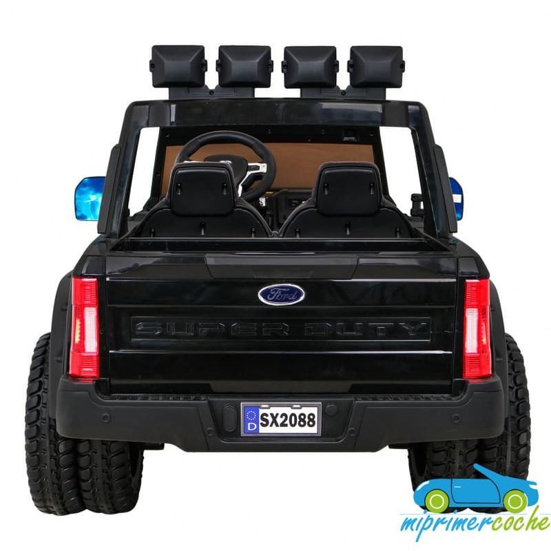 Coche eléctrico para niños FORD SUPER DUTY 4X4 12V con mando parental 2.4G,equipo de música, 2 plazas, ruedas de caucho, 4 motores, ruedas traseras dobles, luces led, asiento en eco piel, ventiladores.