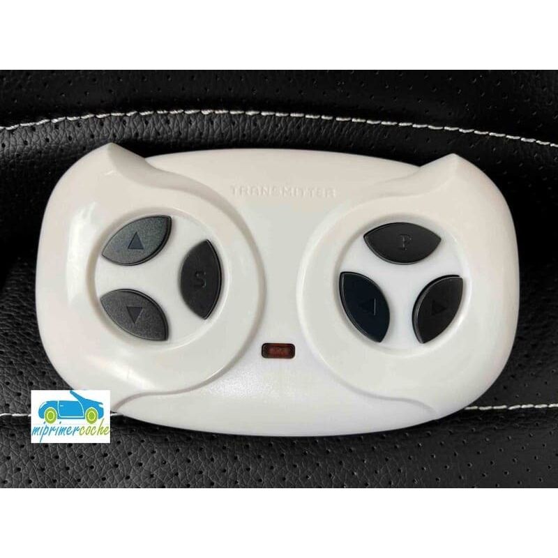 - el coche puede ser controlado por el padre gracias al mando distancia 2.4G con funciones de marcha hacia delante / atrás , girar izquierda / derecha , selector de velocidades y botón de paro de emergencia .