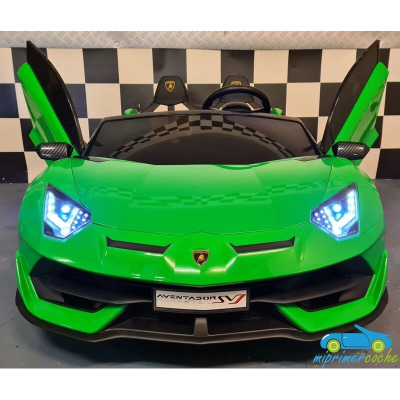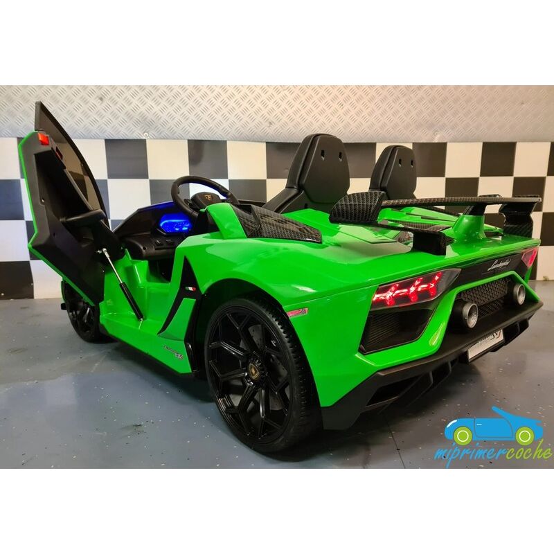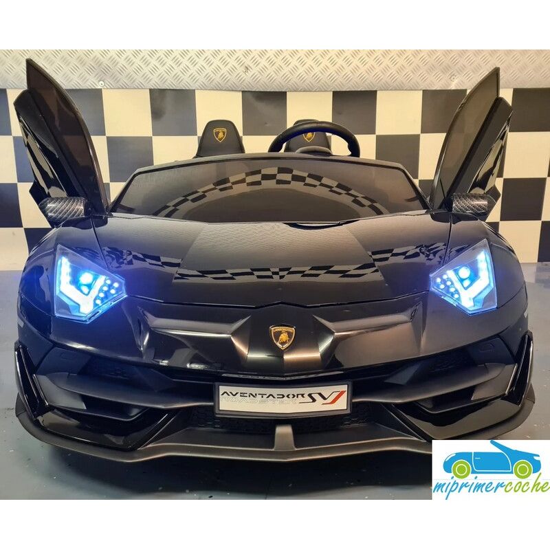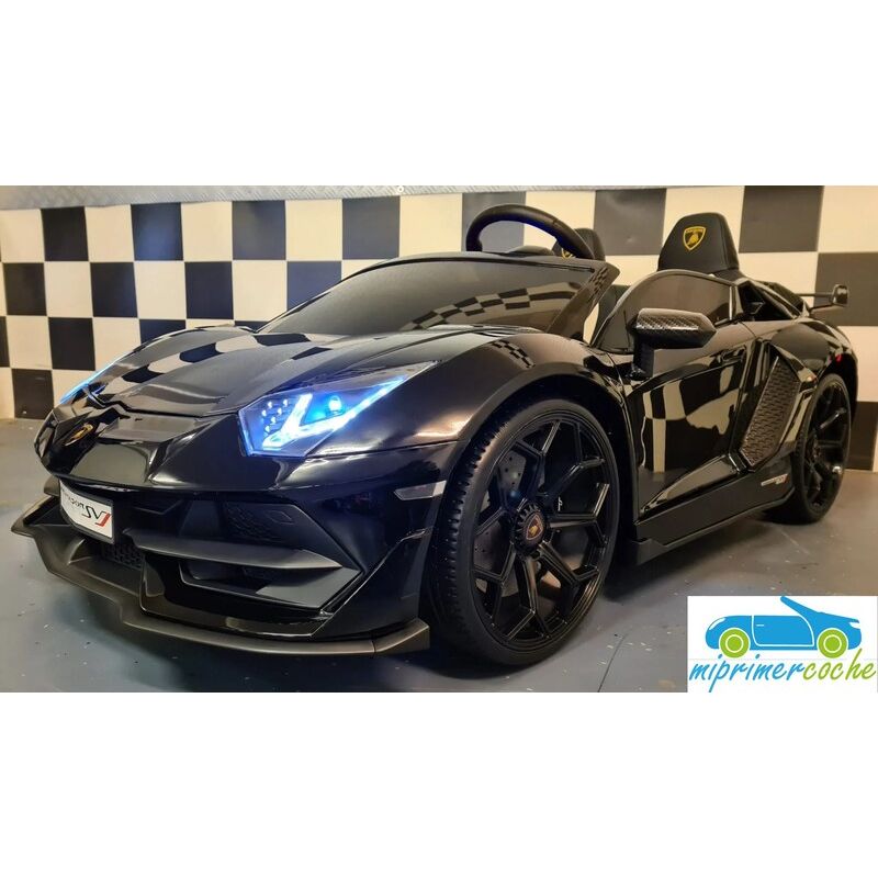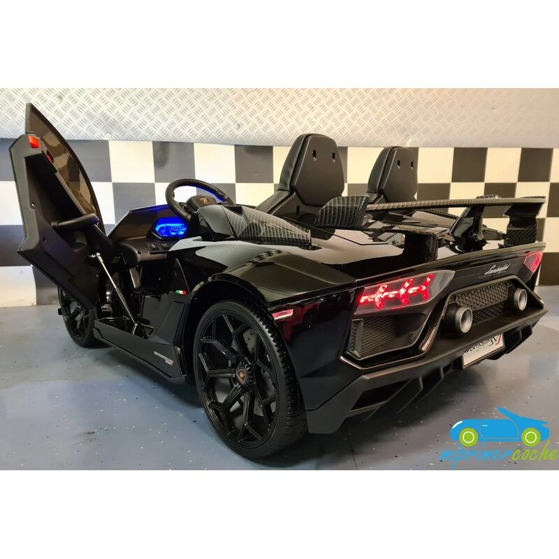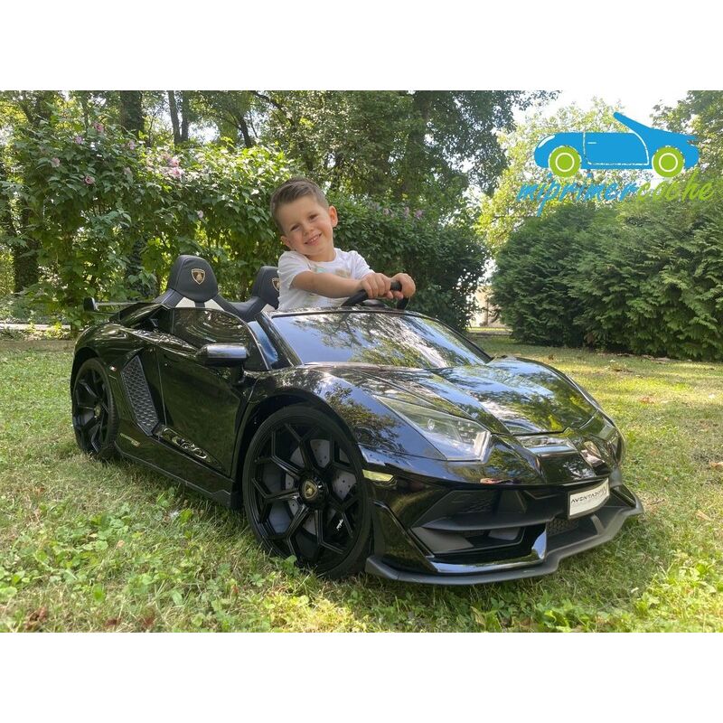 Mi Primer Coche presenta el coche eléctrico para niños LAMBORGHINI AVENTADOR SVJ con 2 plazas , una replica con la LICENCIA OFICIAL de la marca . Es un coche con un acabado excelente con la calidad que se puede esperar de un coche licenciado por una marca tan lujosa , un diseño con trazos deportivos , una línea cuidada , que destaca por la apertura de las puertas en forma de gaviota , permitiendo dejar las puertas en lo mas alto , con total seguridad , gracias a los amortiguadores . Con una apariencia robusta y un interior deportivo , con ruedas de caucho , equipo completo de música , 2 potentes motores de 12v 45w ...este modelo es una gran elección de compra .
