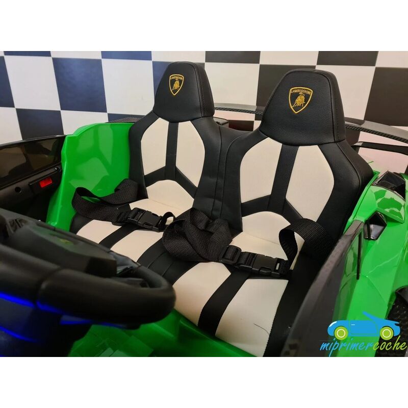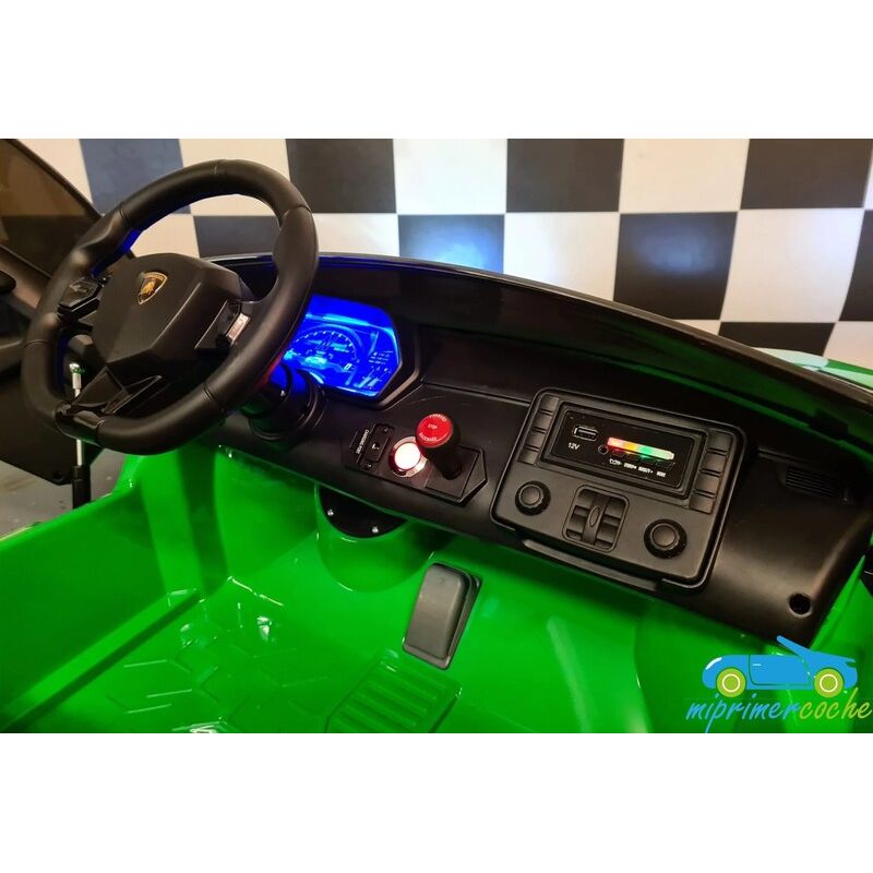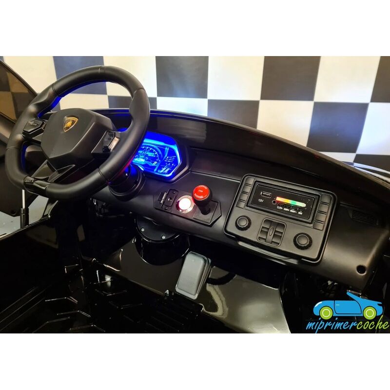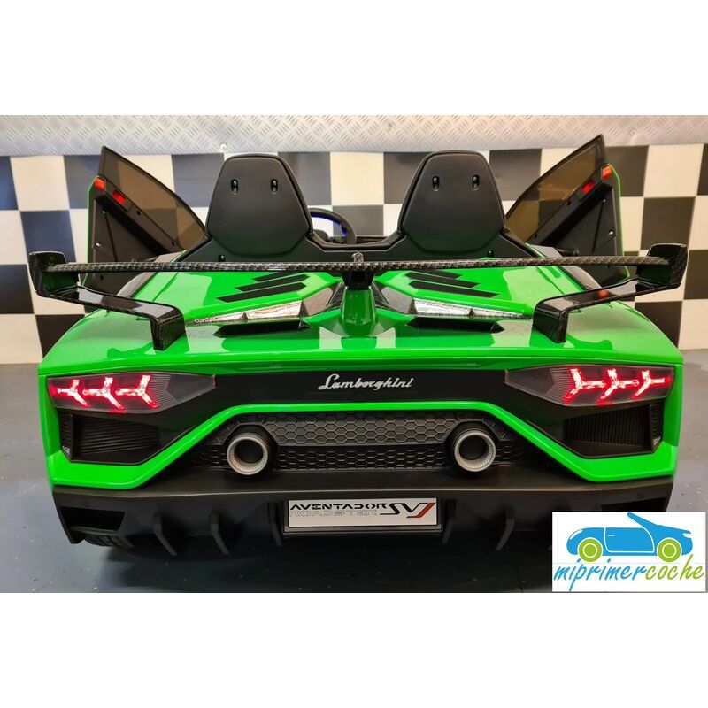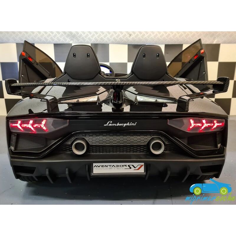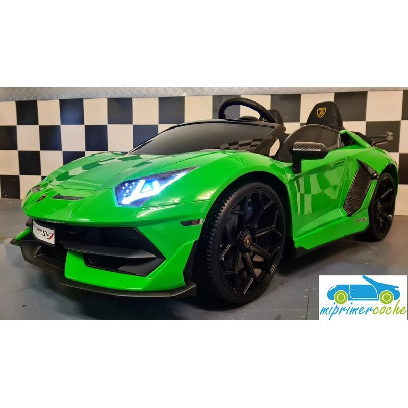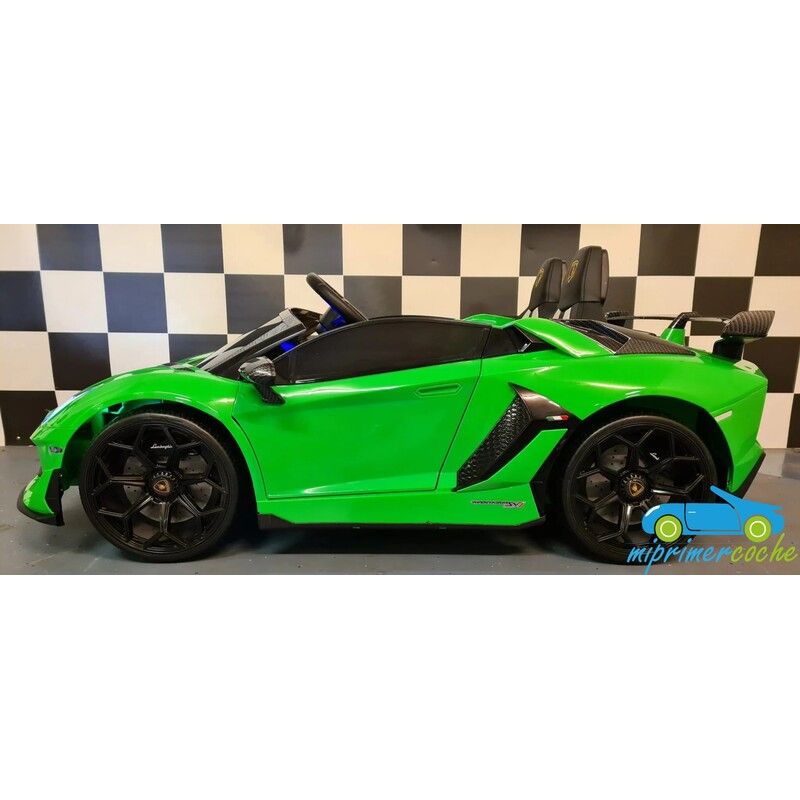Mi Primer Coche presenta el coche eléctrico para niños LAMBORGHINI AVENTADOR SVJ con 2 plazas , una replica con la LICENCIA OFICIAL de la marca . Es un coche con un acabado excelente con la calidad que se puede esperar de un coche licenciado por una marca tan lujosa , un diseño con trazos deportivos , una línea cuidada , que destaca por la apertura de las puertas en forma de gaviota , permitiendo dejar las puertas en lo mas alto , con total seguridad , gracias a los amortiguadores . Con una apariencia robusta y un interior deportivo , con ruedas de caucho , equipo completo de música , 2 potentes motores de 12v 45w ...este modelo es una gran elección de compra .