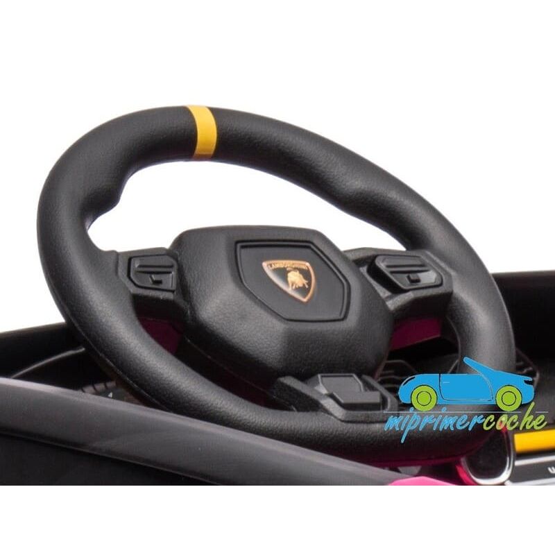 · el volante está decorado en la parte central con el símbolo de Lamborghini