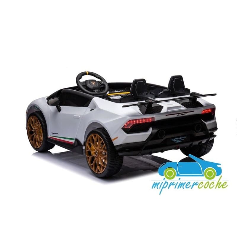 Mi Primer Coche presenta el coche eléctrico para niños LAMBORGHINI HURACAN PERFORMANTE con 2 plazas , una replica con la LICENCIA OFICIAL de la marca . Es un coche con un acabado excelente con la calidad que se puede esperar de un coche licenciado por una marca tan lujosa , un diseño con trazos deportivos , una línea cuidada . Con una apariencia robusta y un interior deportivo , con ruedas de caucho , equipo completo de música , 4 potentes motores ...este modelo es una gran elección de compra .