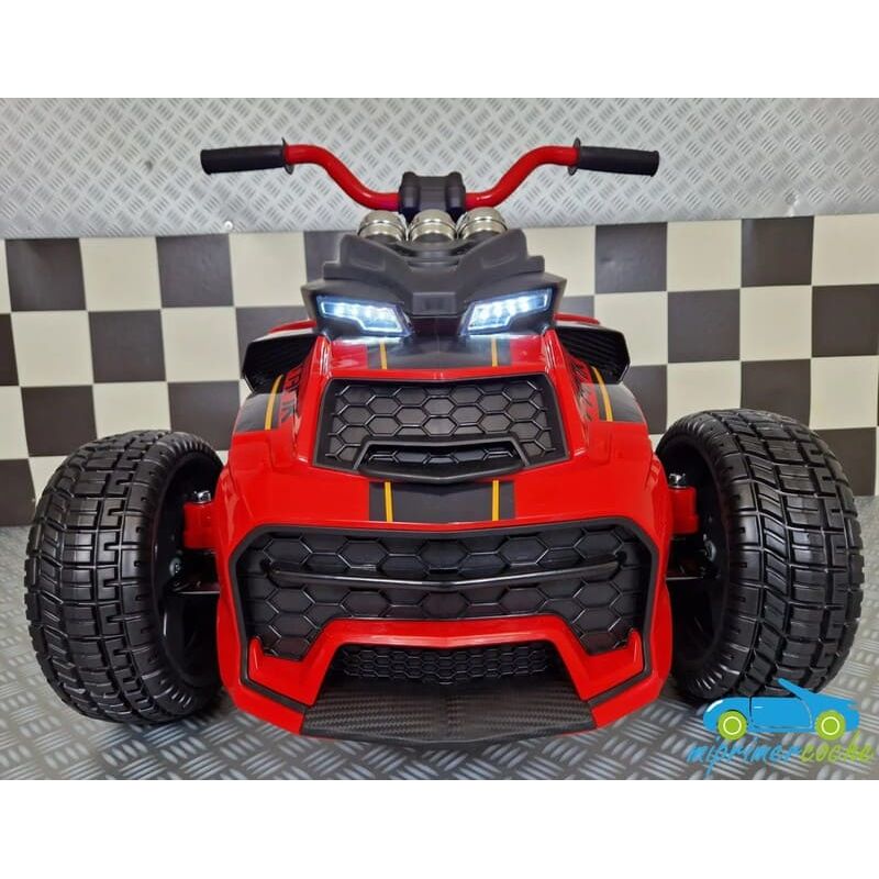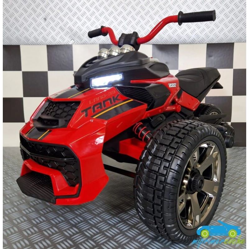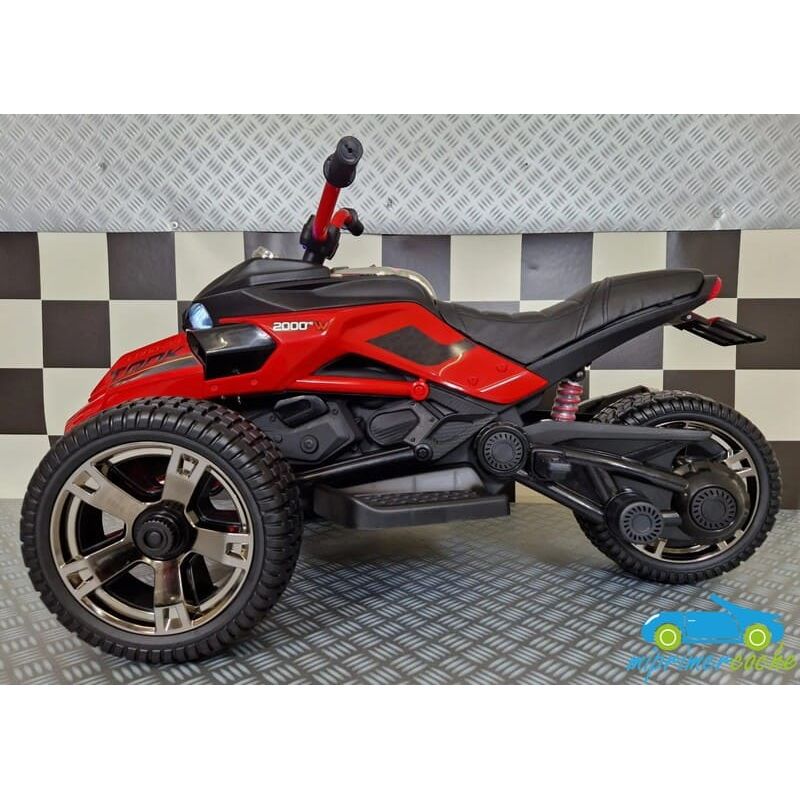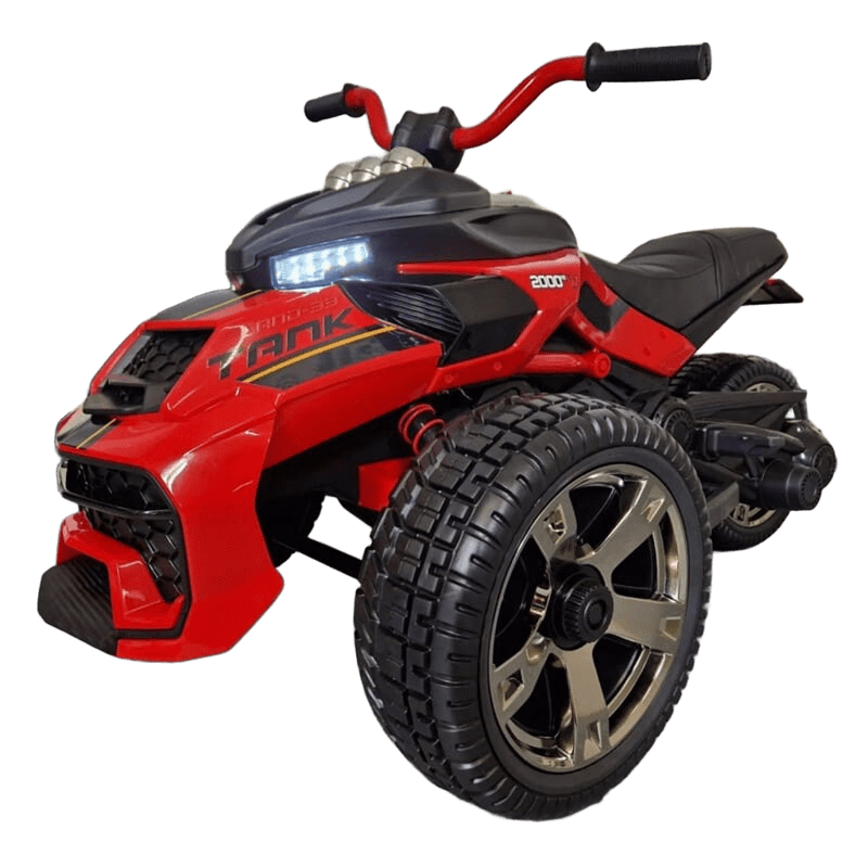 ¡Esta motocicleta eléctrica Spyder para niños es imprescindible con su aspecto moderno y su carácter único! La moto Spyder tiene un aspecto bastante agresivo debido a su parte delantera ancha. El hecho de que esta motocicleta para niños Spyder tenga dos ruedas delanteras y una sola rueda trasera hace que esta motocicleta sea única.
