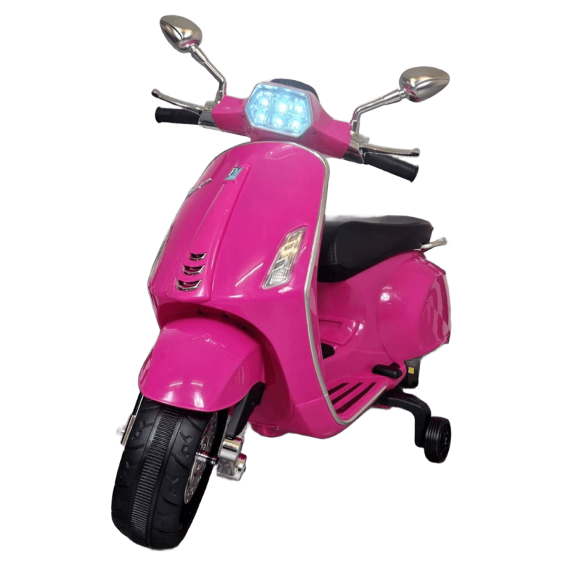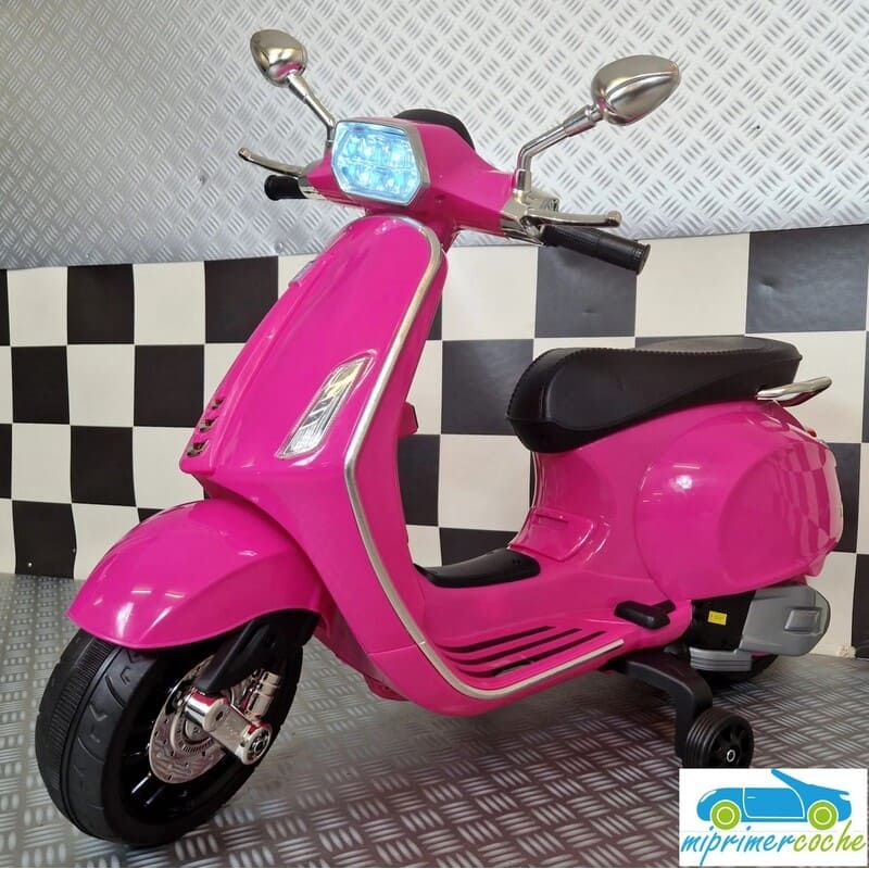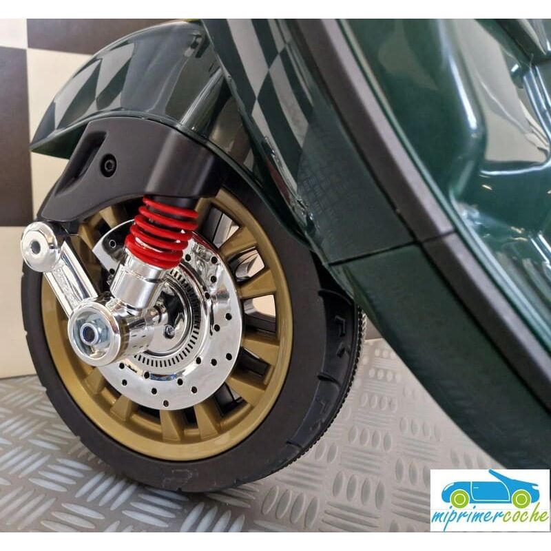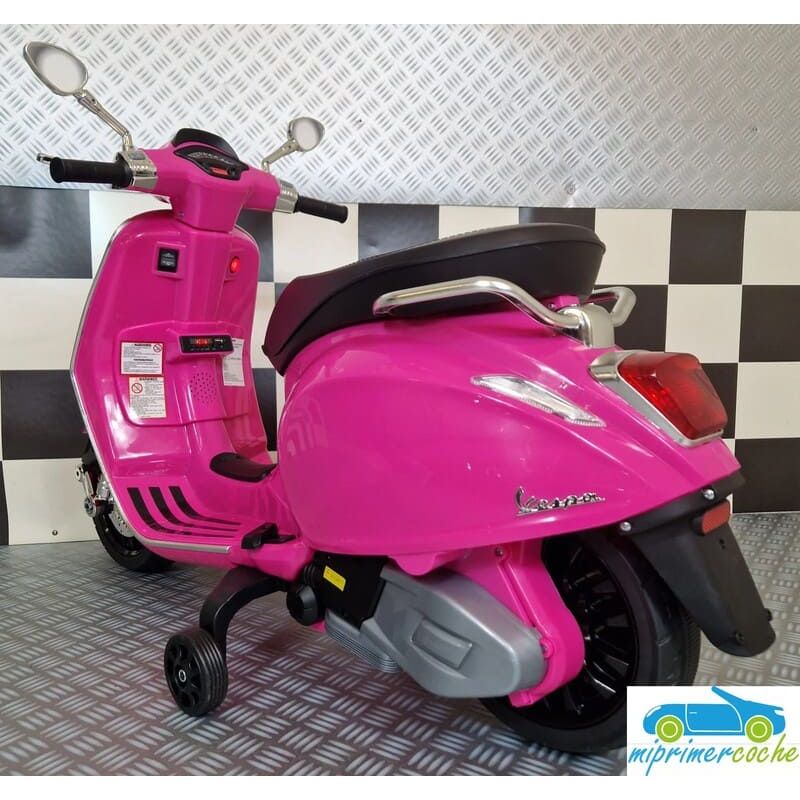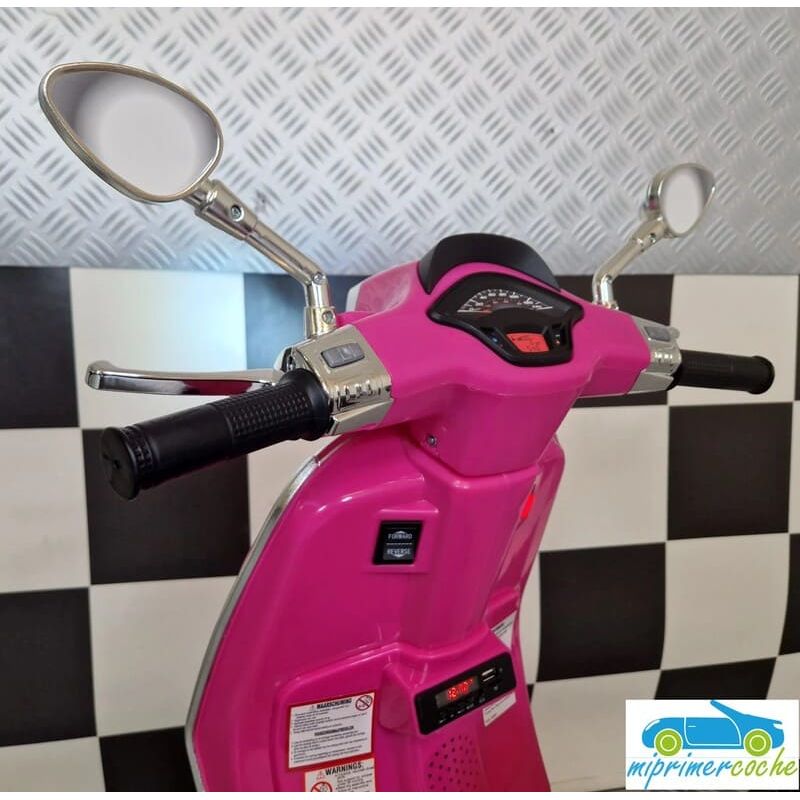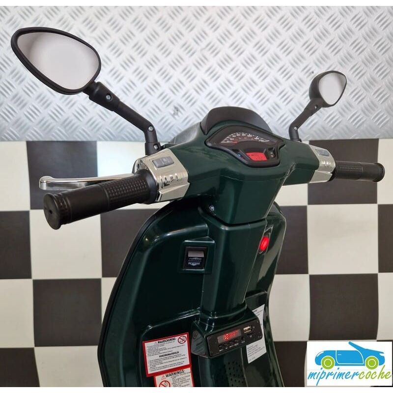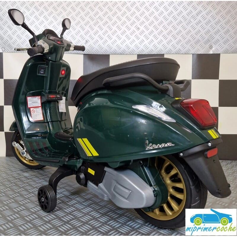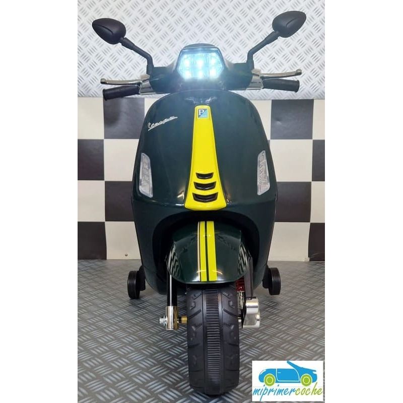 Mi Primer Coche te presenta una nueva Moto Eléctrica para niños VESPA PIAGGIO SPRINT 12v , con 2 motores , iluminación led , equipo de sonido completo . También destacamos que es una moto con LICENCIA OFICIAL PIAGGIO , con ruedines regulables que pueden ser quitados cuando el niño o la niña gana en confianza .