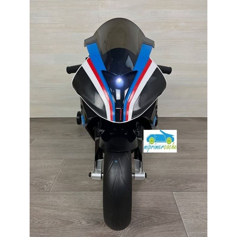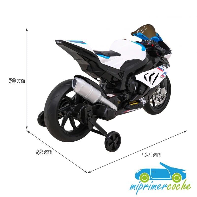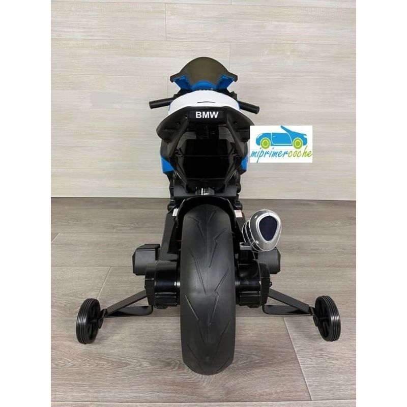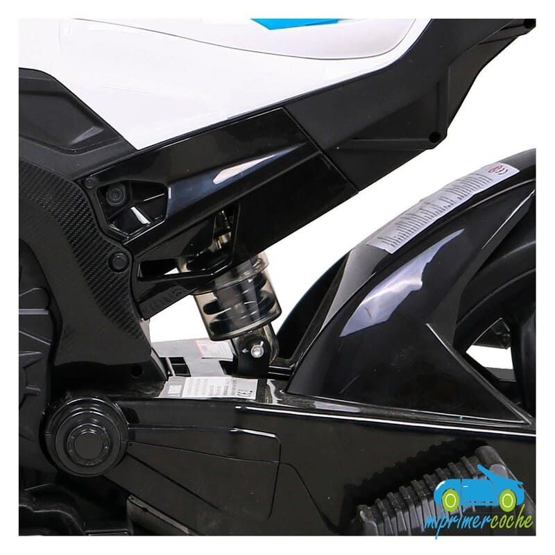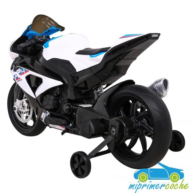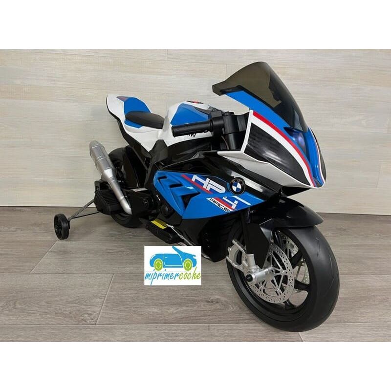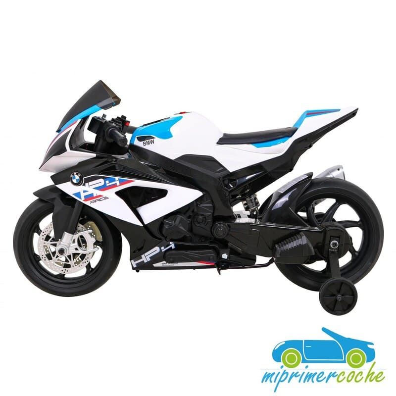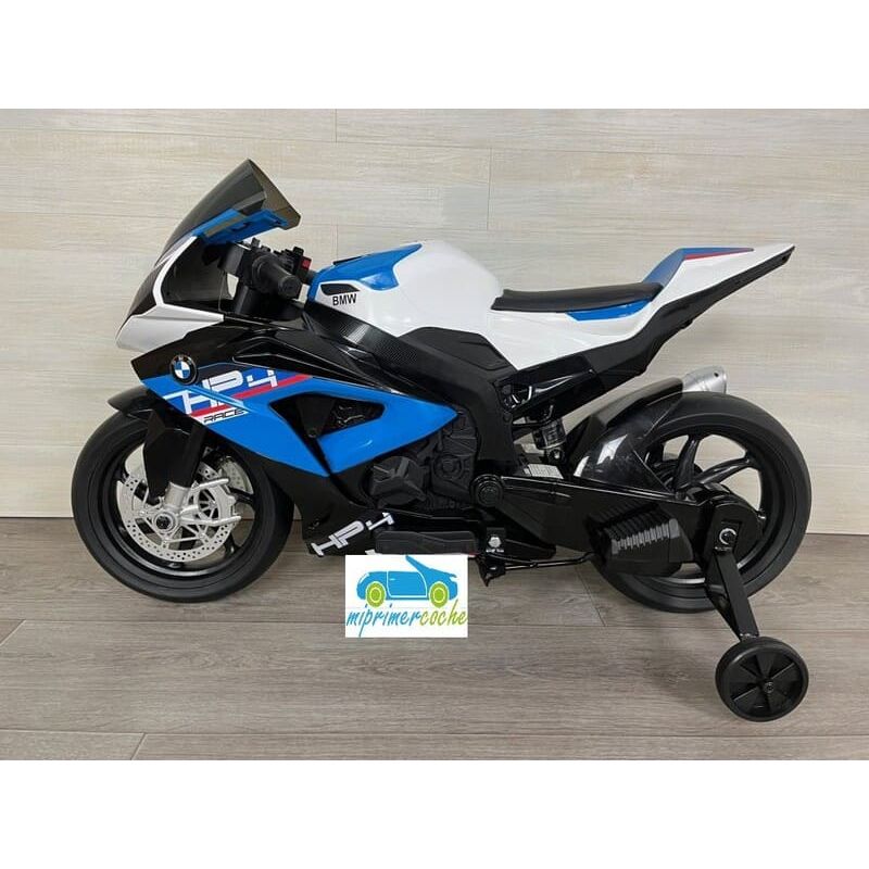 Moto eléctrica para niños BMW HP4 12V con luces , ruedas de apoyo , ruedas de caucho , asiento en polipiel , 2 motores .