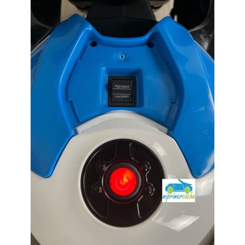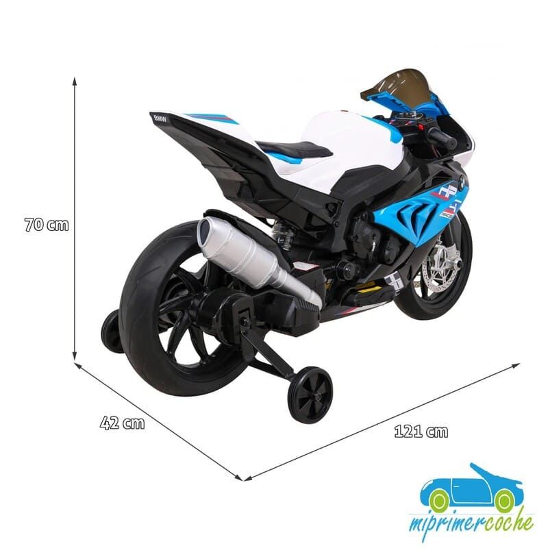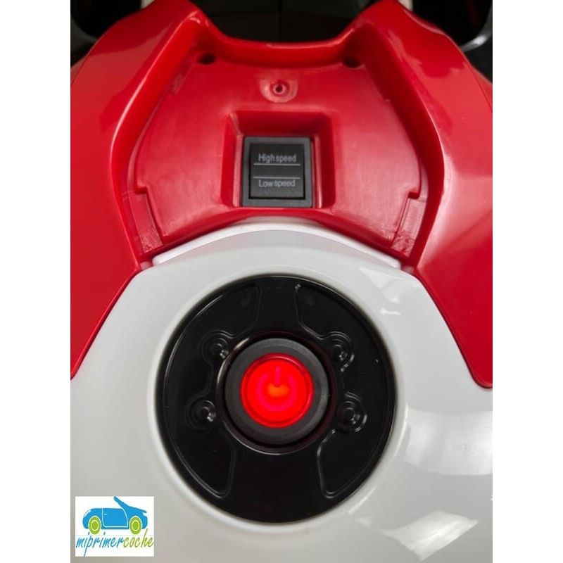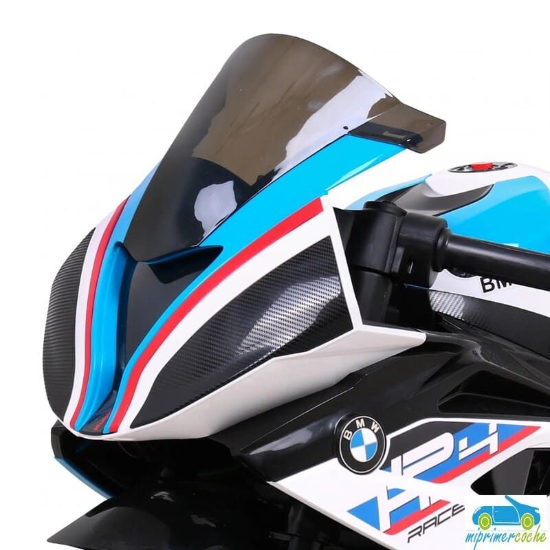 Mi Primer Coche presenta una moto eléctrica infantil BMW HP4 12V con un diseño deportivo espectacular inspirado en las motocicletas BMW, con licencia oficial de la marca. Está equipada con dos motores de 12v, ruedas de goma EVA para mayor agarre y estabilidad, y luces LED delanteras y traseras.