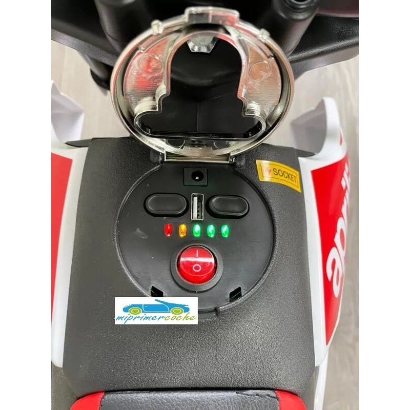 Además, alcanza una velocidad máxima de 6 km/h, e incorpora música pregrabada, luces LED delanteras y un asiento acolchado en polipiel para mayor comodidad. Una moto eléctrica con licencia oficial APRILIA, fabricada con materiales resistentes y detalles realistas que la convierten en una de las opciones más completas del mercado.