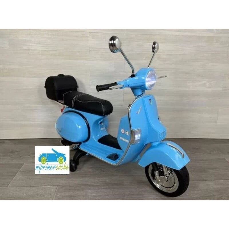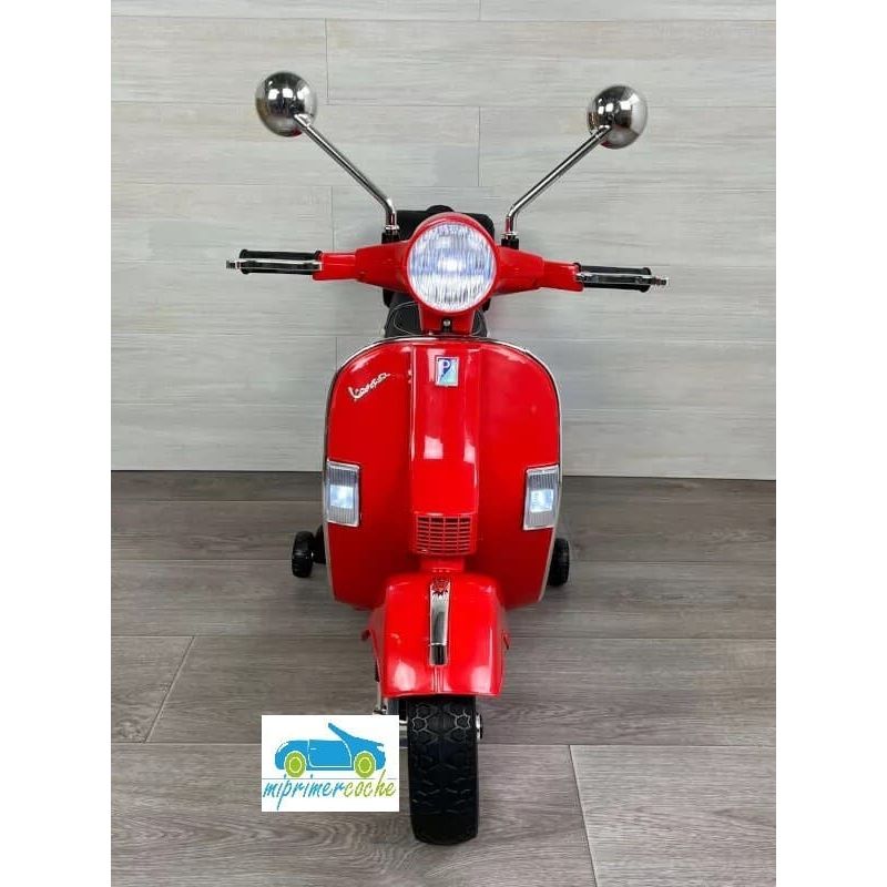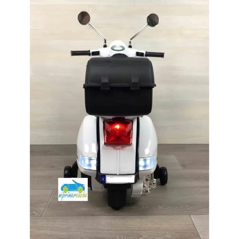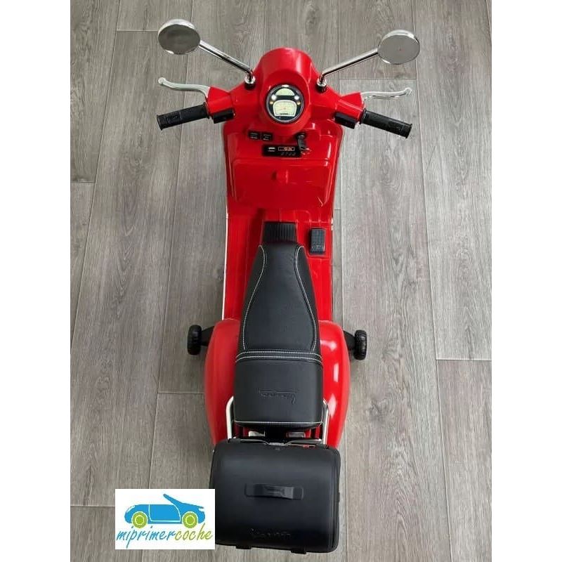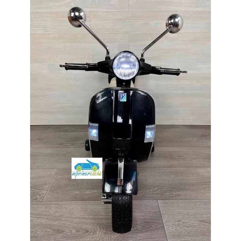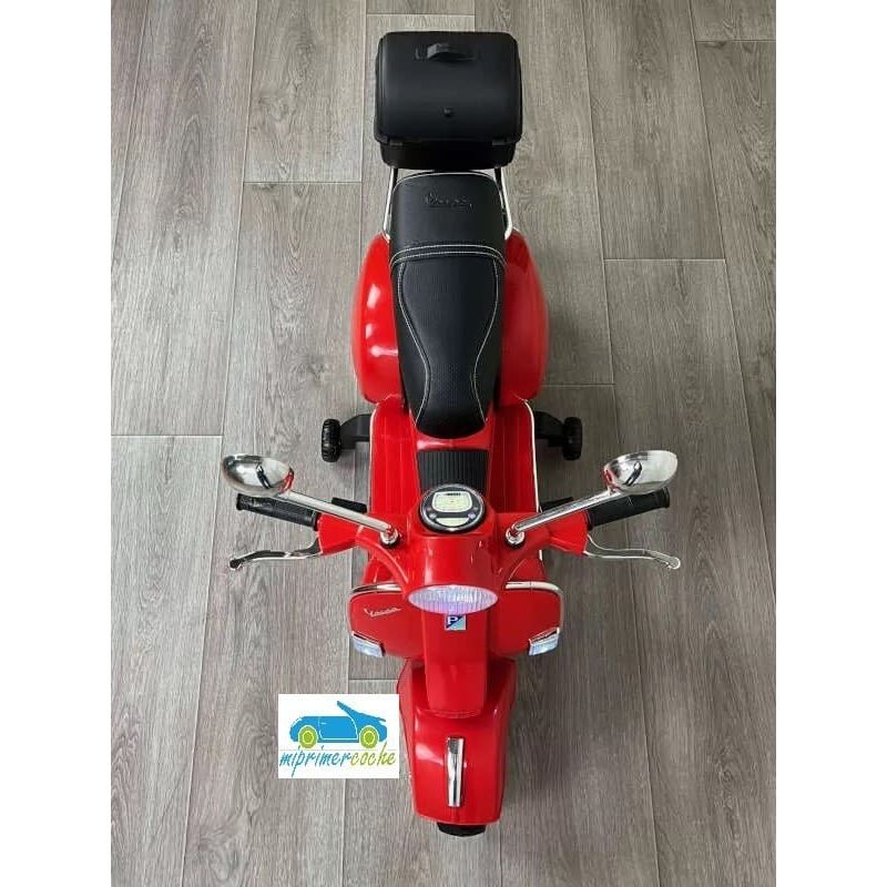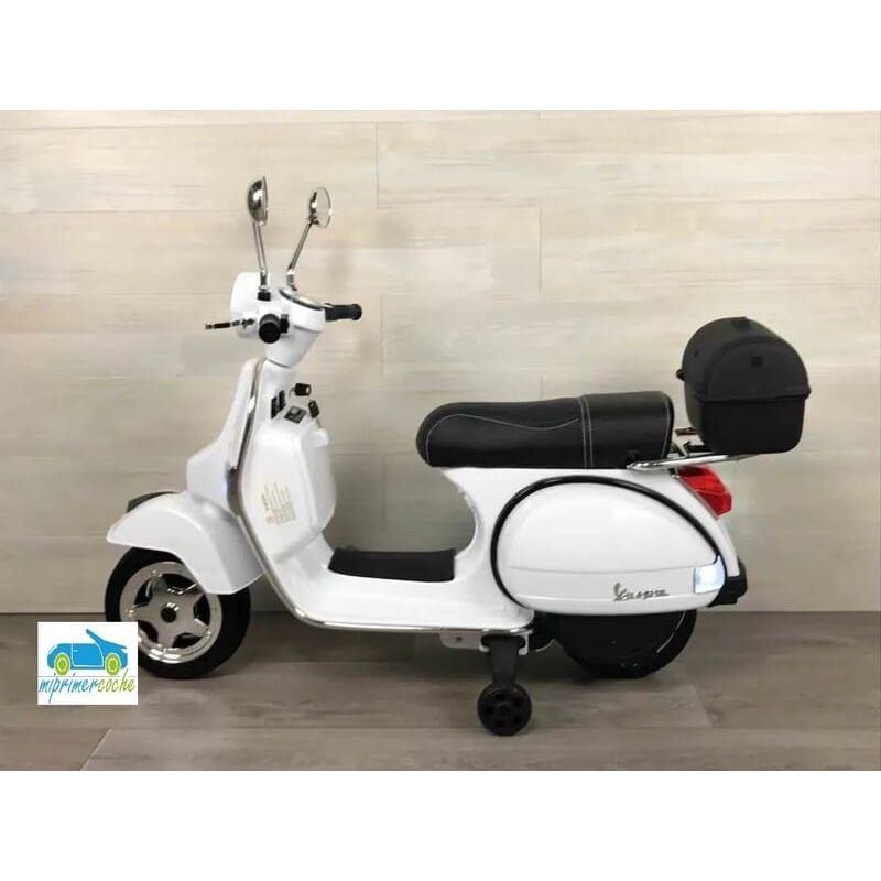 Mi Primer Coche te presenta una nueva Moto Eléctrica para niños VESPA PIAGGIO 12v con ruedas de caucho, 2 motores, asiento en polipiel, iluminación led, equipo de sonido completo. También destacamos que es una moto con LICENCIA OFICIAL PIAGGIO, con ruedines regulables que pueden ser quitados cuando el niño o la niña gana en confianza.