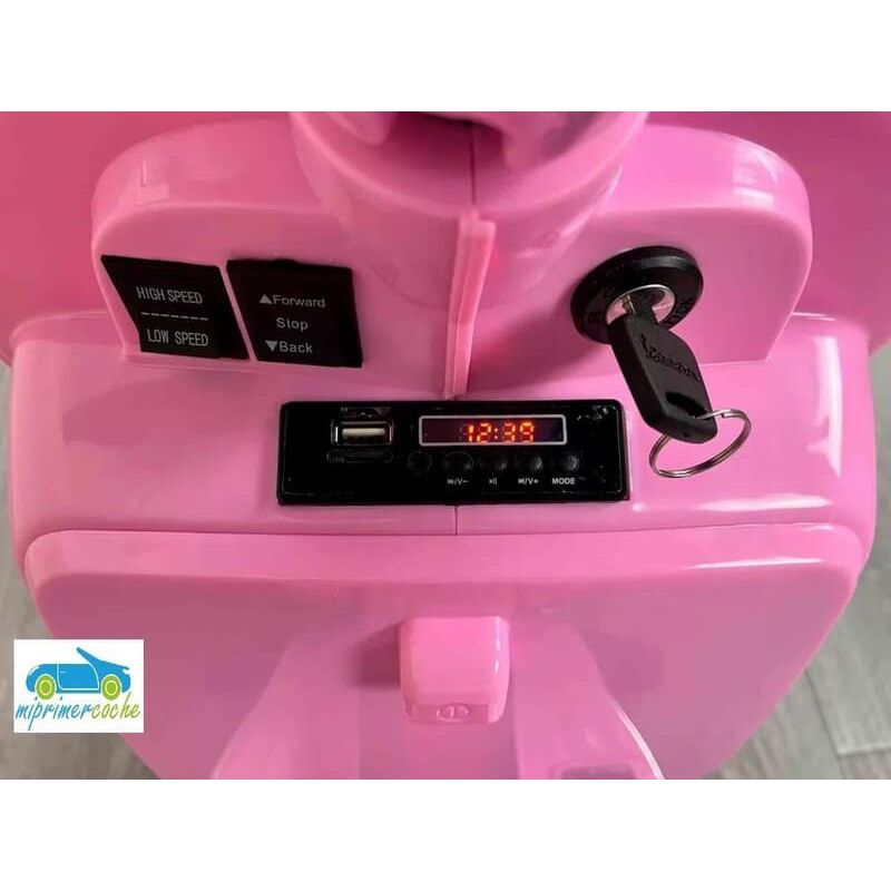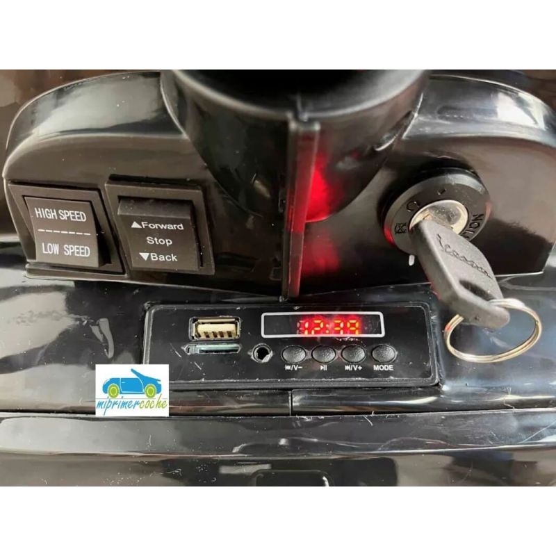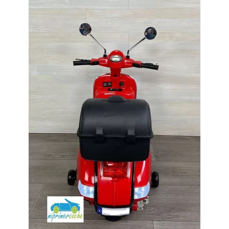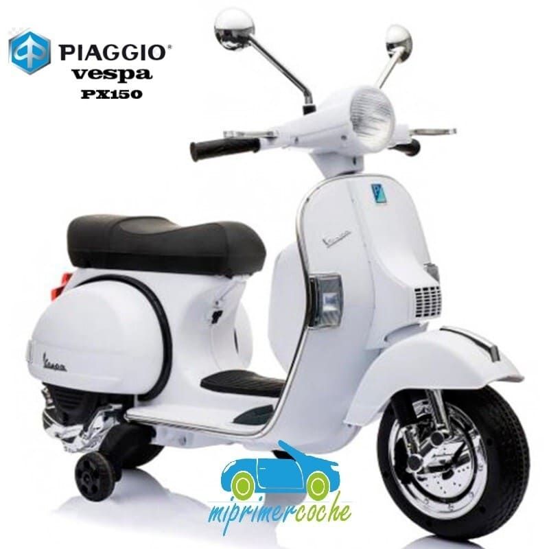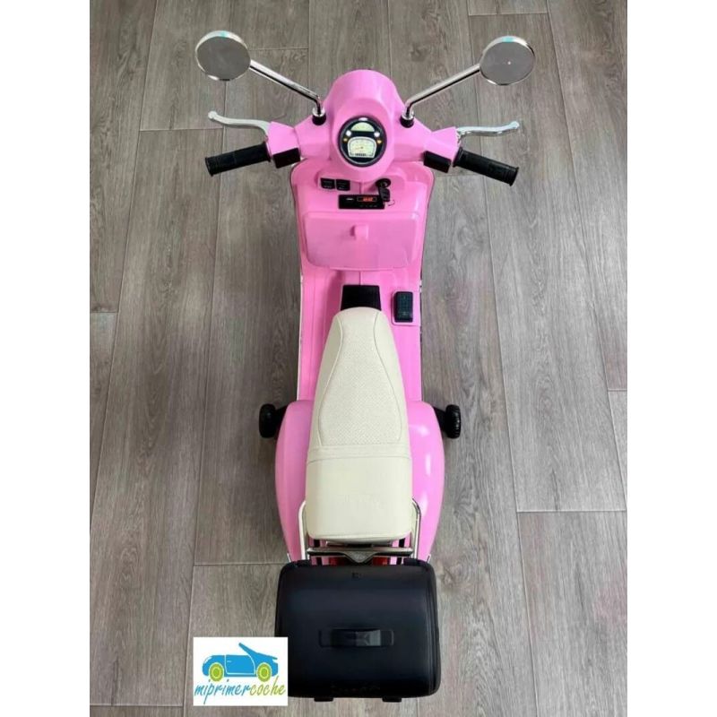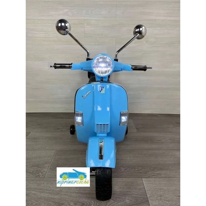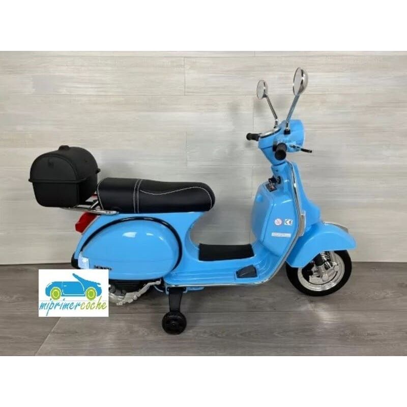 Mi Primer Coche te presenta una nueva Moto Eléctrica para niños VESPA PIAGGIO 12v con ruedas de caucho, 2 motores, asiento en polipiel, iluminación led, equipo de sonido completo. También destacamos que es una moto con LICENCIA OFICIAL PIAGGIO, con ruedines regulables que pueden ser quitados cuando el niño o la niña gana en confianza.
