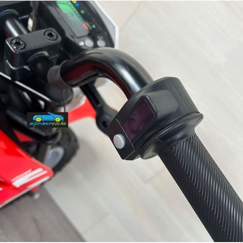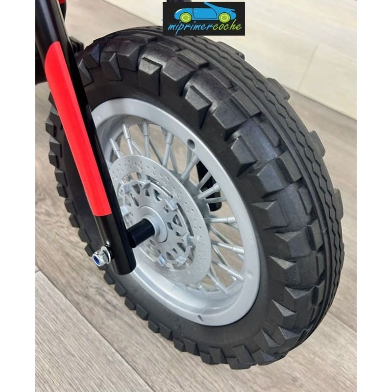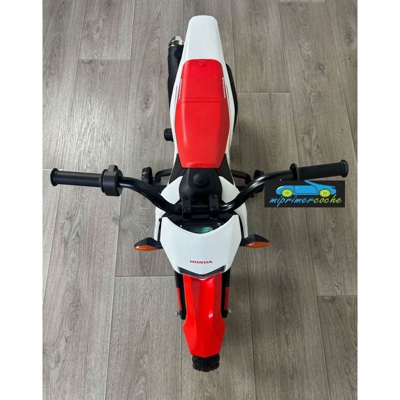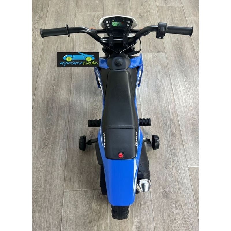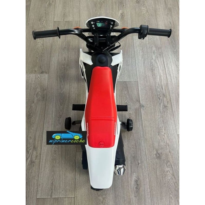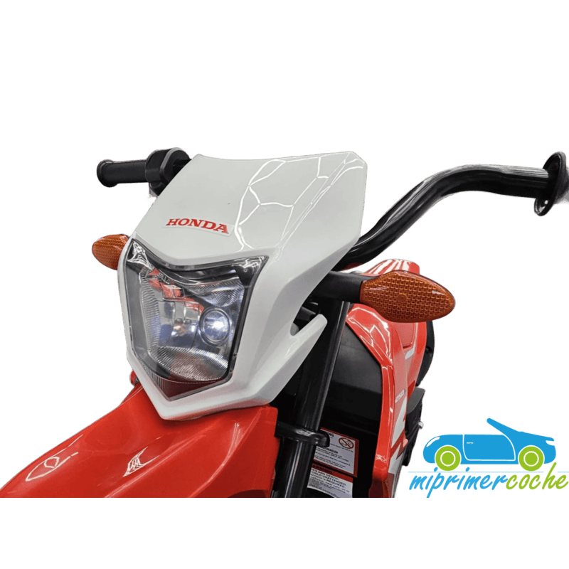 Esta moto eléctrica para niños es una replica de la verdadera HONDA CRF .Está equipada con motor de 12v , ruedines laterales , arranque mediante botón , hace ser una moto que no pase inadvertida por los parques . El acelerador lo tiene en el manillar mediante botón e incluye 2 ruedines que ayudan a los niños a tener mayor estabilidad a la hora de usar la moto .