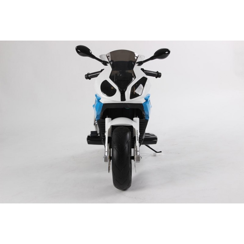 Moto eléctrica para niños BMW S 1000 RR AZUL 12V con ruedas neumáticas y asiento acolchado en piel