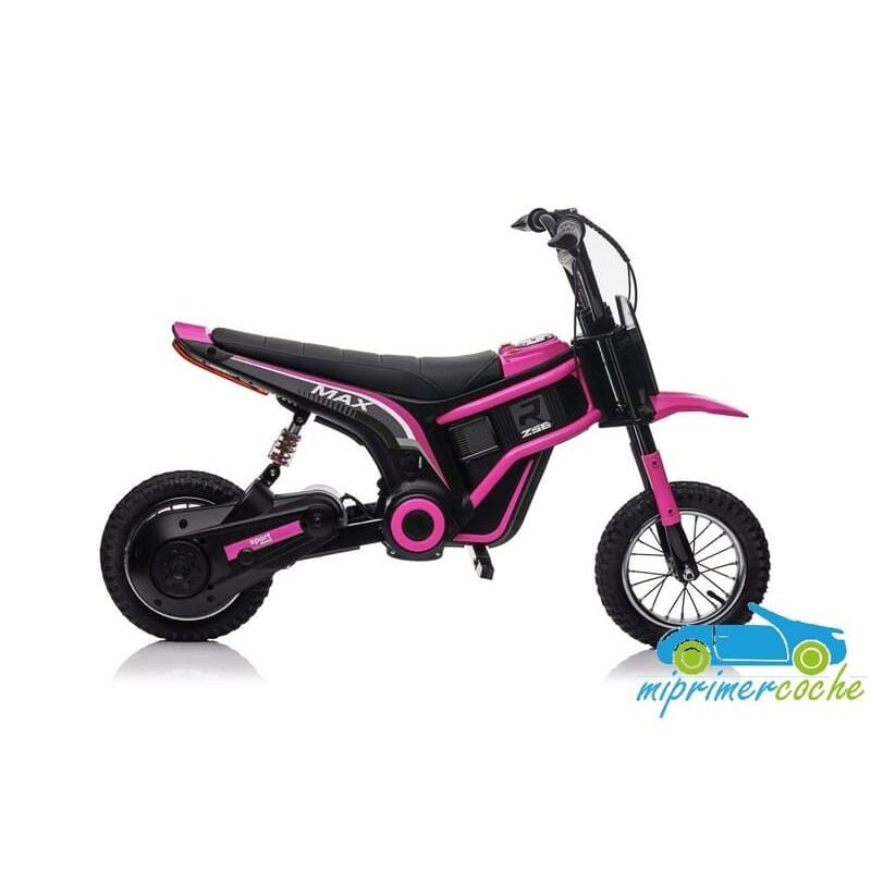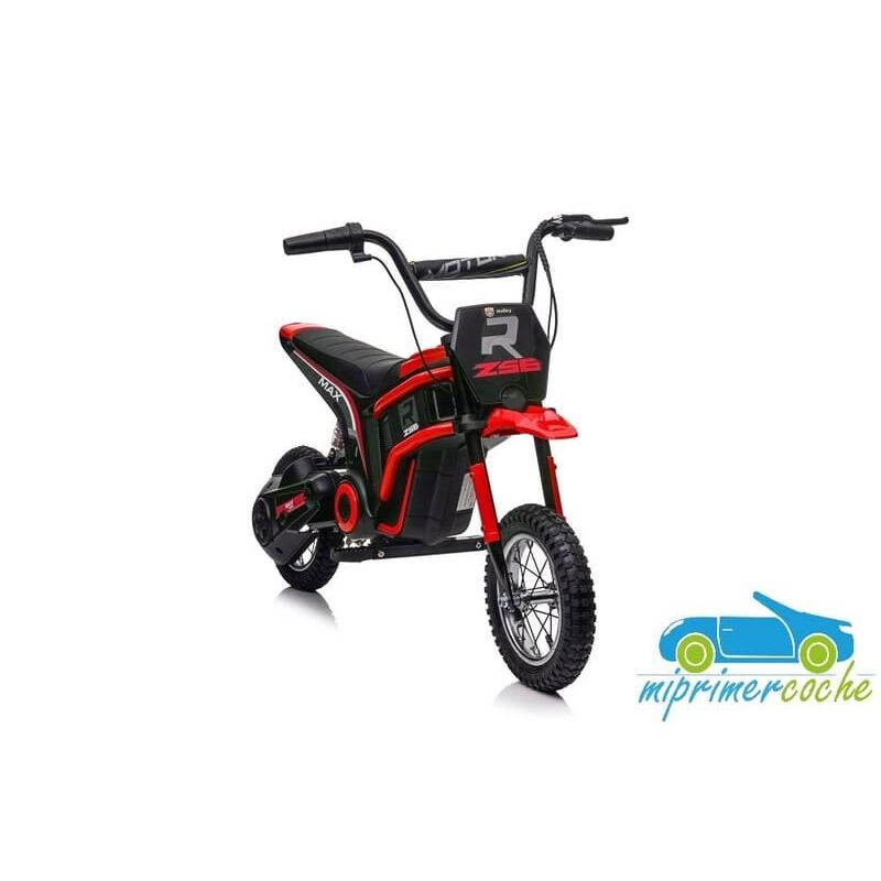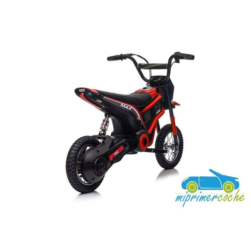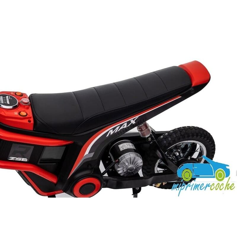 Moto eléctrica para niños 24V con neumáticos de goma, asiento de cuero , suspensión trasera , equipo de música .