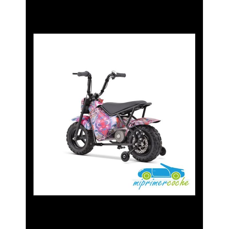 · Mini moto para niños de pequeñas dimensiones, pues mide tan sólo 45 cm del sillín al suelo