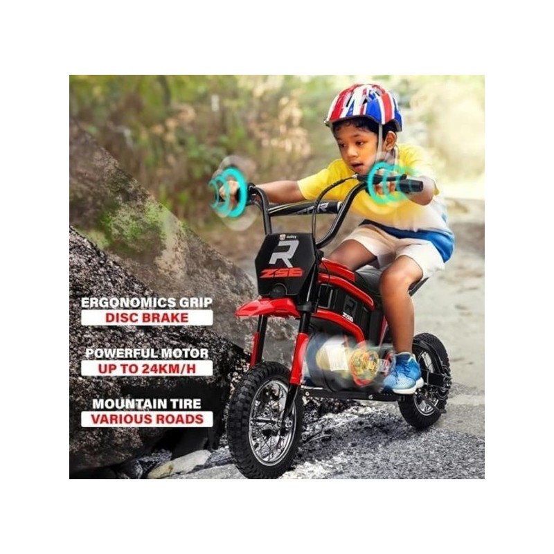 La Moto Eléctrica infantil Beker 24V 350W, es la elección ideal para los jóvenes pilotos que buscan aventura y diversión. Diseñada con un potente motor de 350W y características de seguridad mejoradas, ofrece una experiencia de conducción emocionante y segura. Perfecta para niños a partir de 6 años que busquen algo más en el mundo de las dos ruedas.