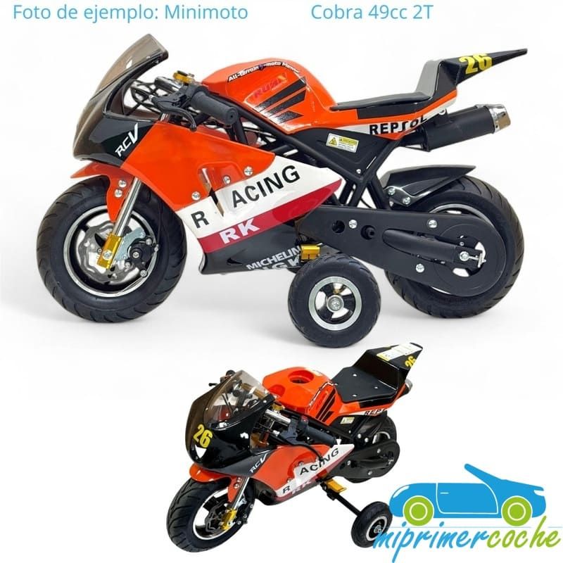 Este juego de ruedines es totalmente compatible con los modelos de minimoto eléctrica Warrior (MX150, MX-E250, MX-E350 y MX-E500W), así como con la minimoto de gasolina ROAN COBRA 49CC 2T.