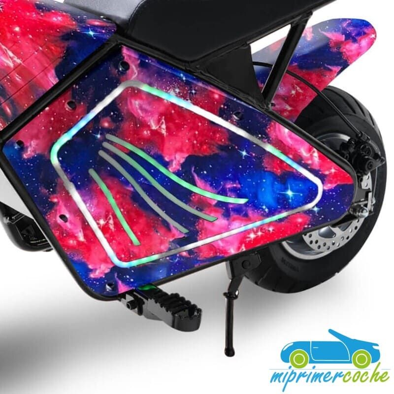 Fabricado con estructura de acero de alta resistencia, este minimoto eléctrico soporta una carga máxima de hasta 60 kg, ofreciendo una gran durabilidad y estabilidad durante el uso. Incluye llave de contacto, lo que aporta un extra de seguridad y control.