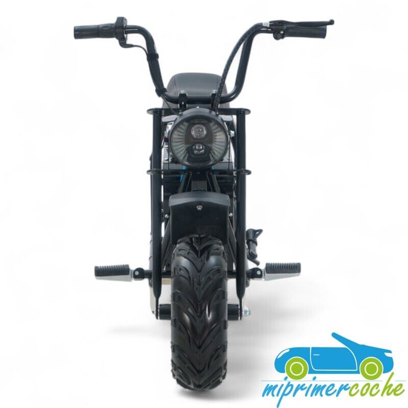 Este sistema hace que la moto Drax sea una minimoto eléctrica ideal para niños, permitiendo un aprendizaje progresivo y seguro. Además, cuenta con freno trasero de disco por cable, llave de contacto y protector de cadena para mayor protección.