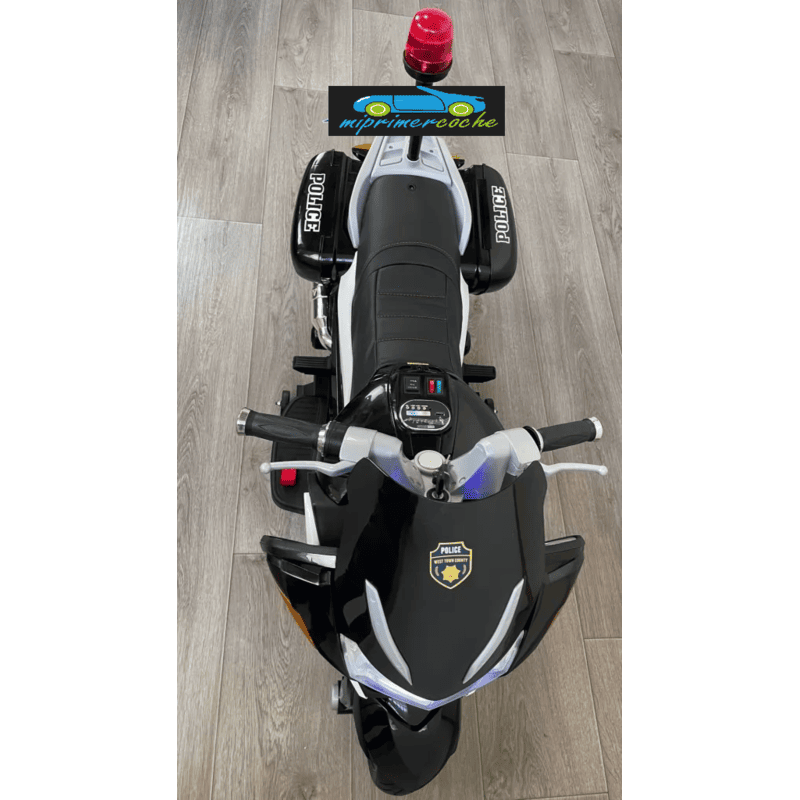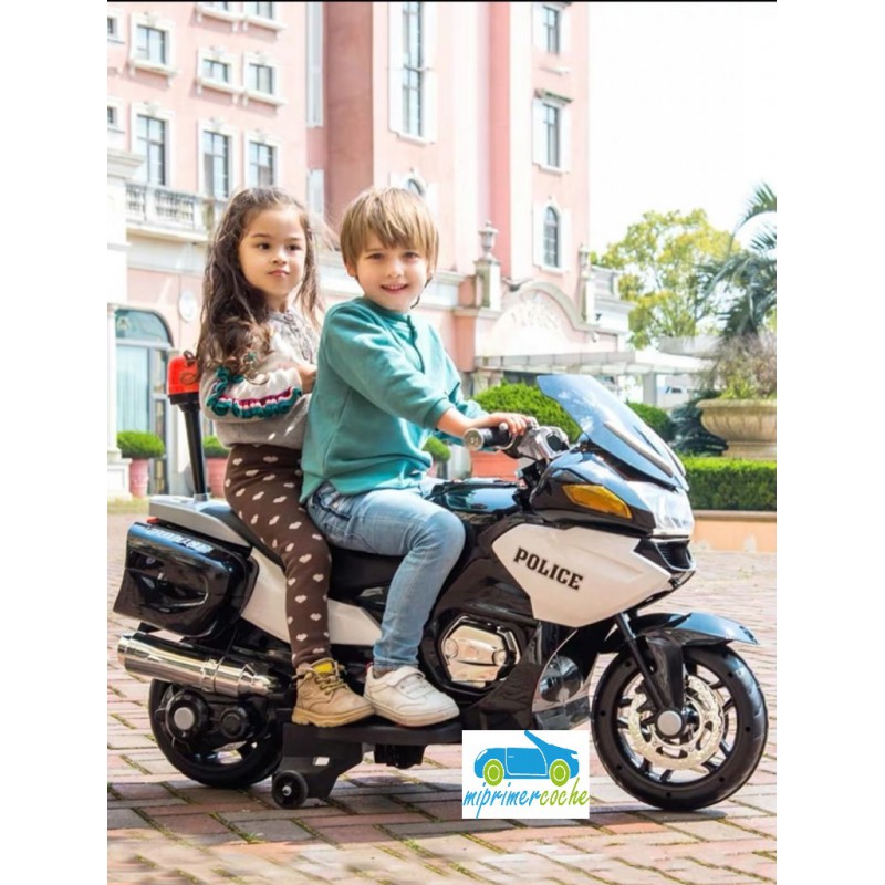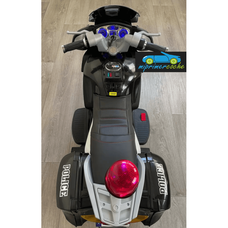 Moto Eléctrica para niños POLICÍA R118RT 24v 2 Plazas, dos motores 24v, llave de arranque, acelerador en el pedal, alarma y luces de policía.
