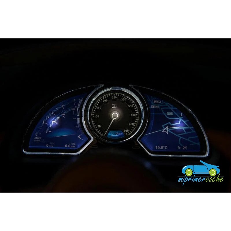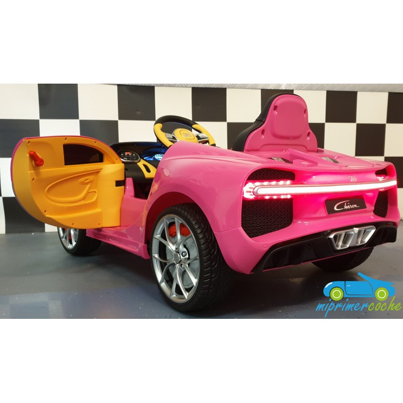 BUGATTI CHIRON 12V con mando parental 2.4G para niños, está diseñado para replicar la experiencia de conducir un auténtico Bugatti Chiron, pero a escala infantil. Equipado con dos motores de 12v 35W y una batería de 12V 7Ah, el coche infantil BUGATTI CHIRON 12V alcanza velocidades de hasta 6 km/h en dos marchas: hacia adelante y hacia atrás.