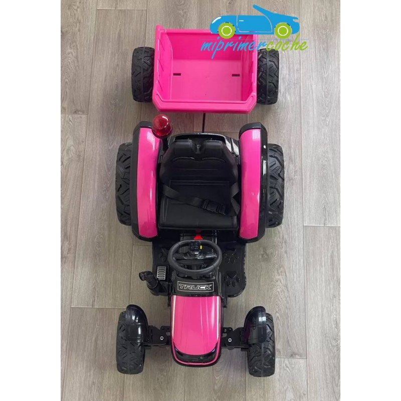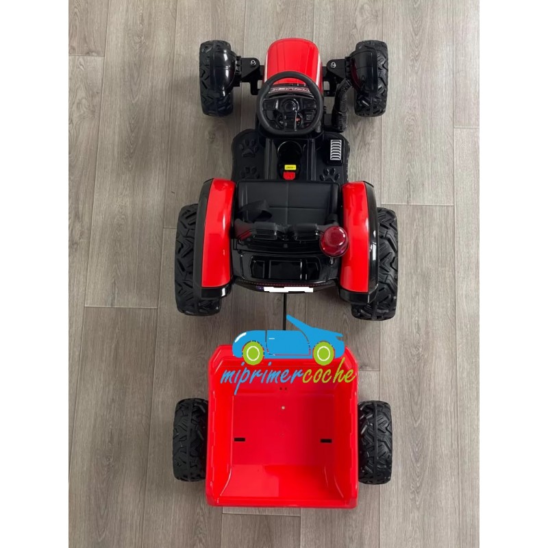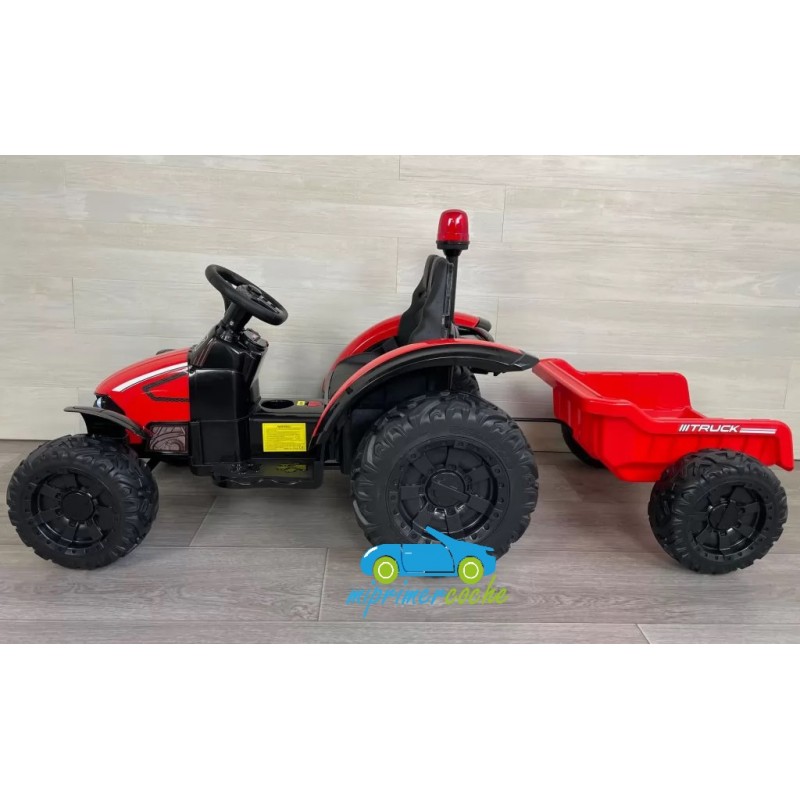 Tractor eléctrico infantil Mi Primer Coche con mando distancia 2.4G, ruedas de caucho , equipo completo de música , 2 motores , remolque .