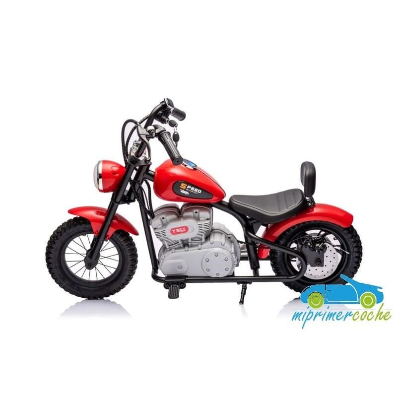 Moto eléctrica para niños 36V 350W con motor sin escobillas , ruedas de goma hinchables , asiento en cuero, llave de arranque, capaz de llegar hasta 25 km/h.