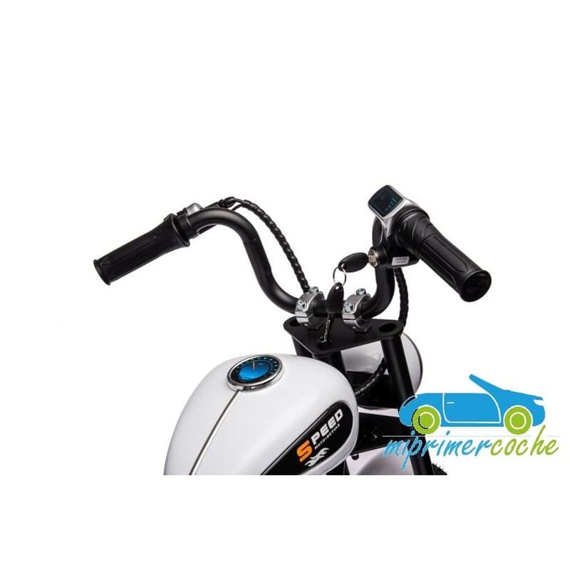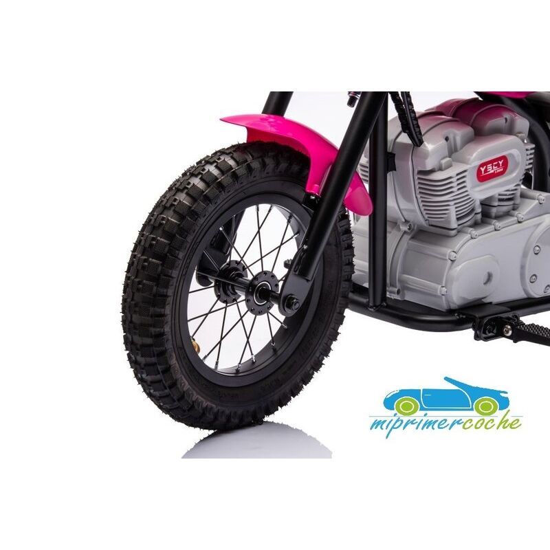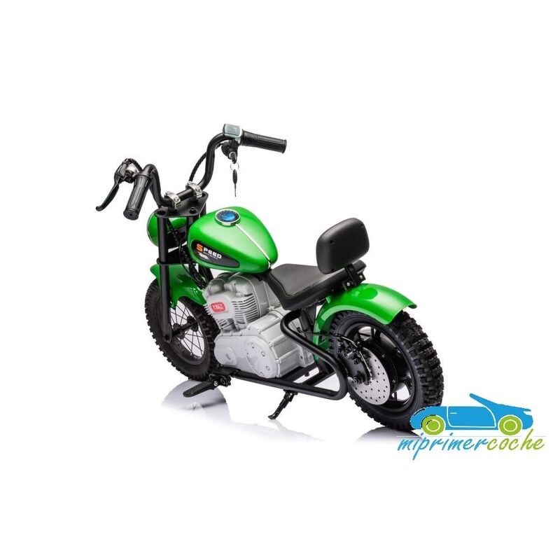 Moto eléctrica para niños 36V 350W con motor sin escobillas , ruedas de goma hinchables , asiento en cuero, llave de arranque, capaz de llegar hasta 25 km/h.