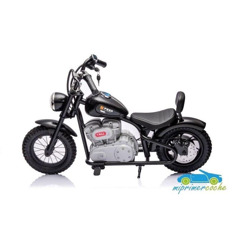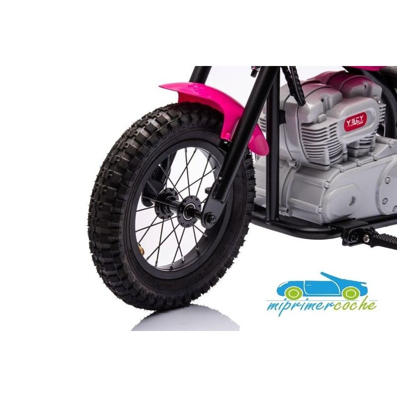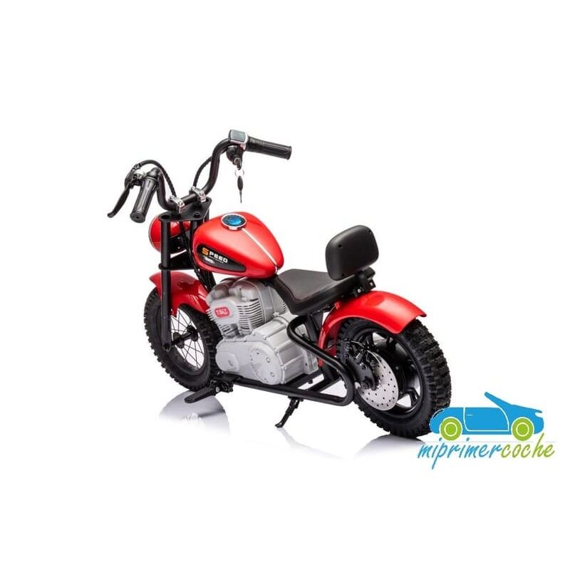 Moto eléctrica para niños 24V 250W con motor sin escobillas , ruedas de goma hinchables , asiento en cuero, llave de arranque, capaz de llegar hasta 20 km/h.
