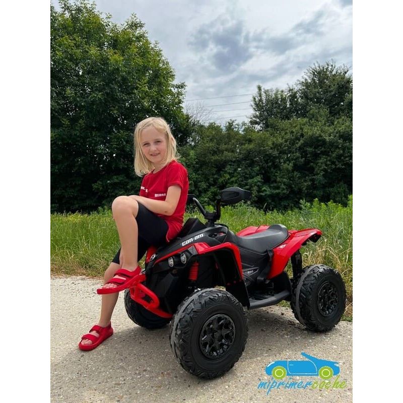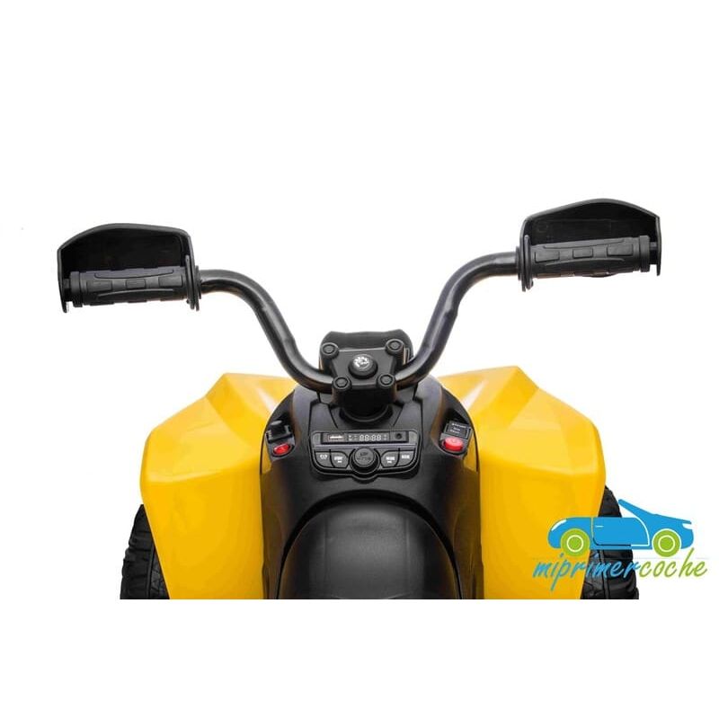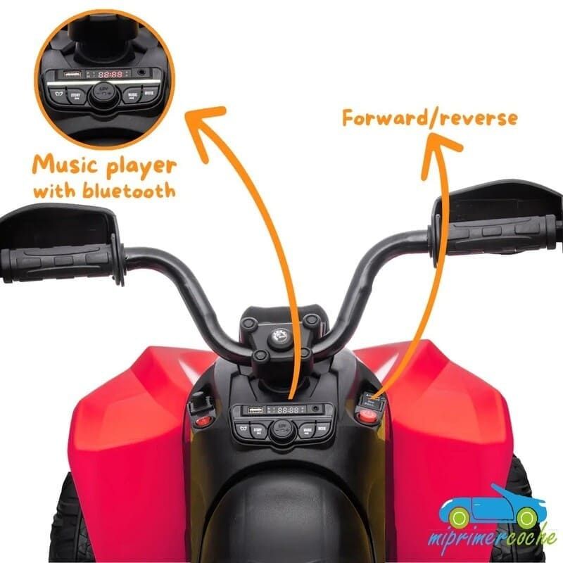 - el niño puede conducir el quad utilizando los controles que están en el interior del coche , con el pedal acelerador hacia adelante / atrás y girar con el volante . Cuando el niño levanta el pie del acelerador , aparece el freno eléctrico con función de parar el coche