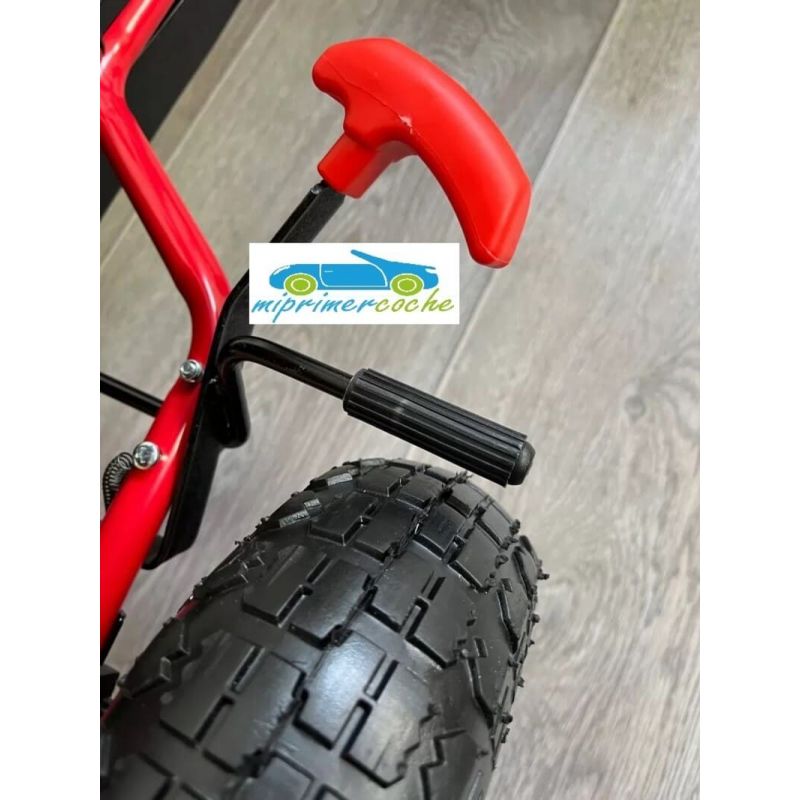 Fantástico Kart con la mejor relación precio del mercado, ruedas neumáticas, asiento ajustable, freno de mano y piñón libre son sus principales propiedades. Con este Kart sus niños combinarán mucha diversión y ejercicio.