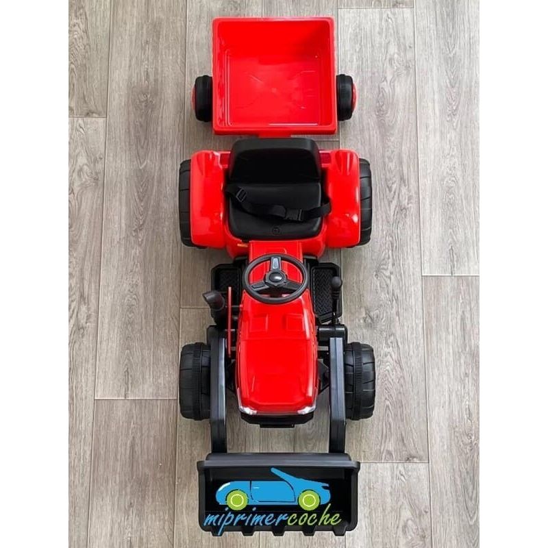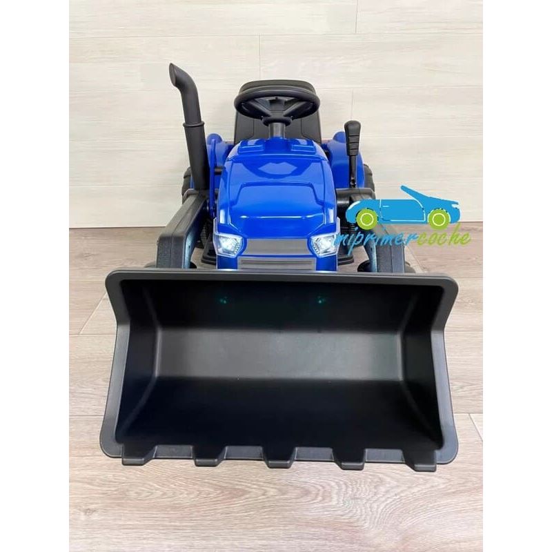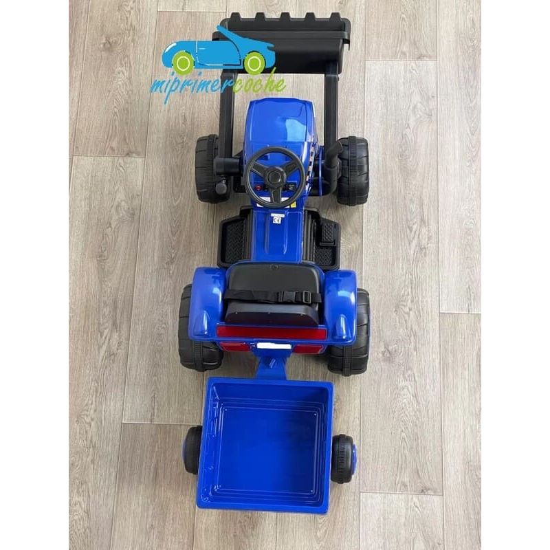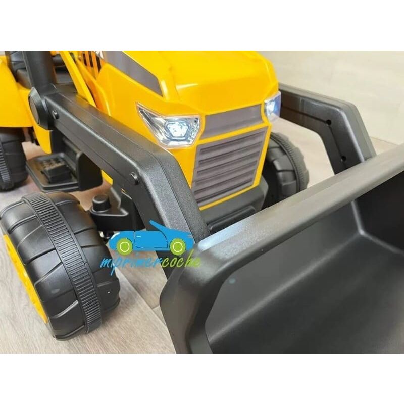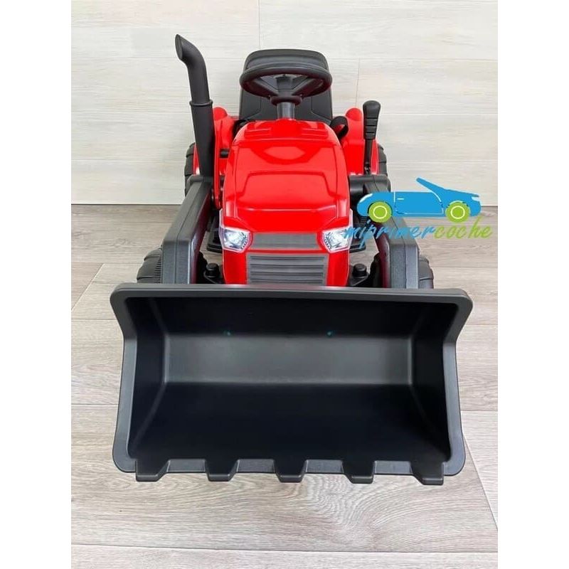 Este tractor eléctrico infantil viene totalmente equipado , con mando parental 2.4G ,asiento en plástico e incluye su propio remolque para transportar la carga .La pala delantera del tractor es completamente funcional, permitiendo a los niños cargar y descargar objetos, lo que fomenta el juego activo y creativo.